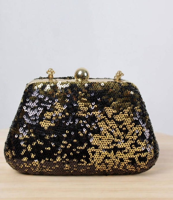 Afgewerkt met pailletten, in een vintage ontwerp; deze tas heeft alles wat een feestelijke avond nodig heeft om je outfit op te leuken!