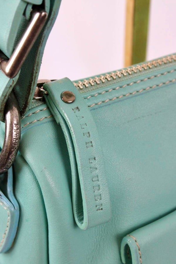Deze prachtige lederen tas met een muntgroene kleur is geen bekend model van Ralph Lauren. Het is echt een pareltje dat Vintique per toeval tegenkwam. Ze is in een goede staat, volledig klaar voor haar nieuwe avontuur!