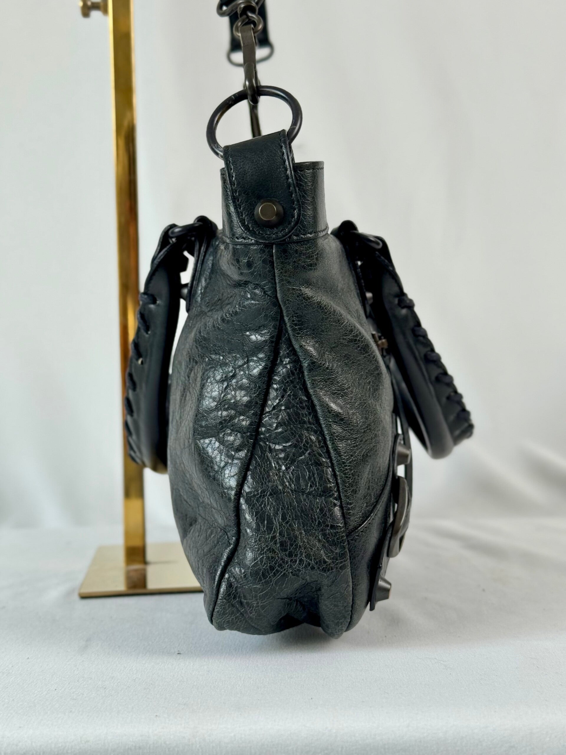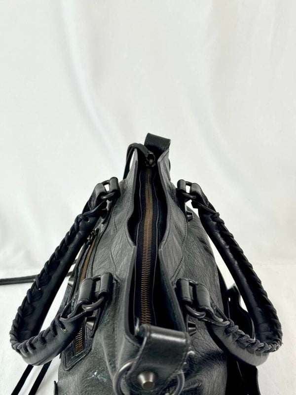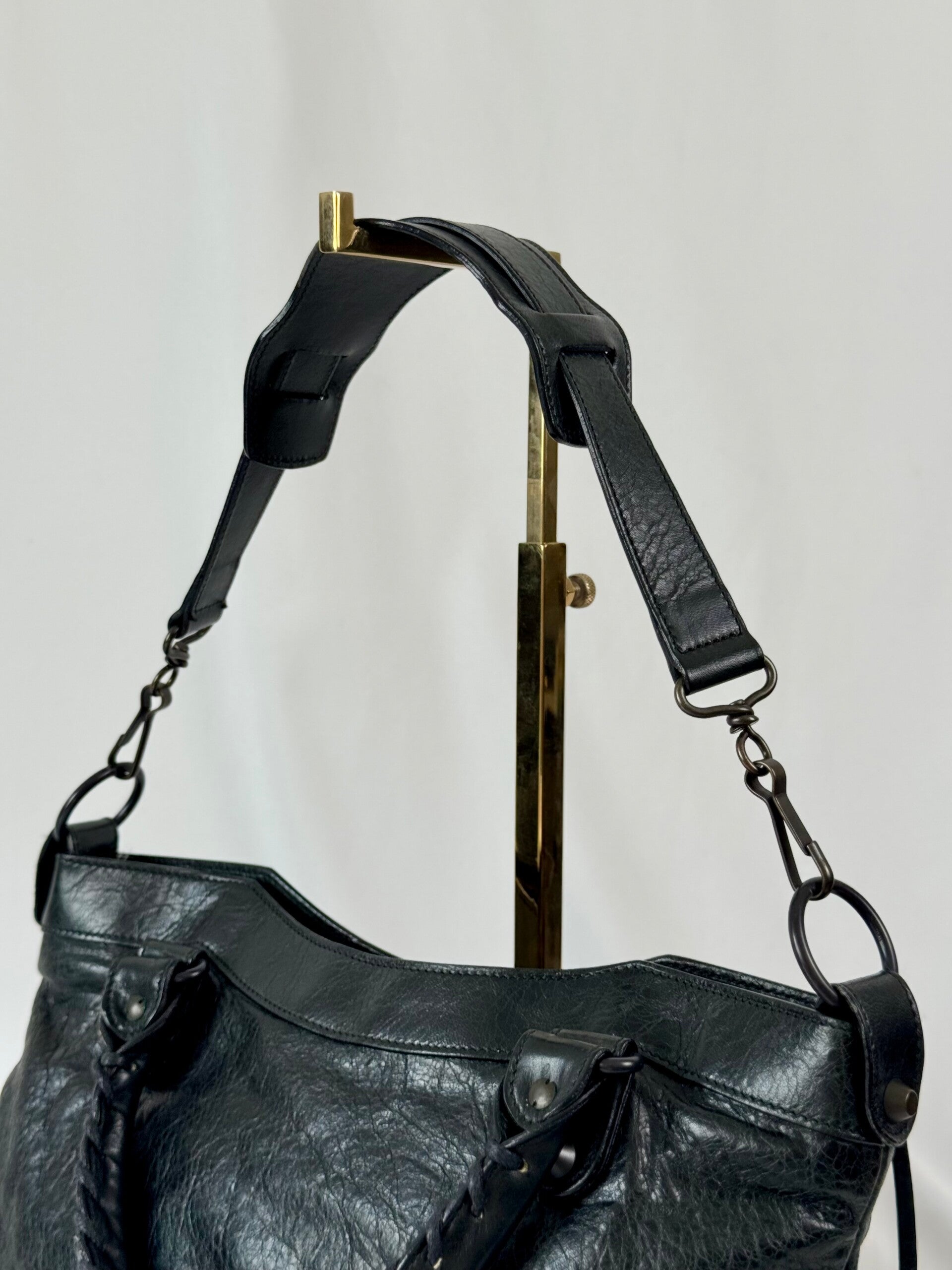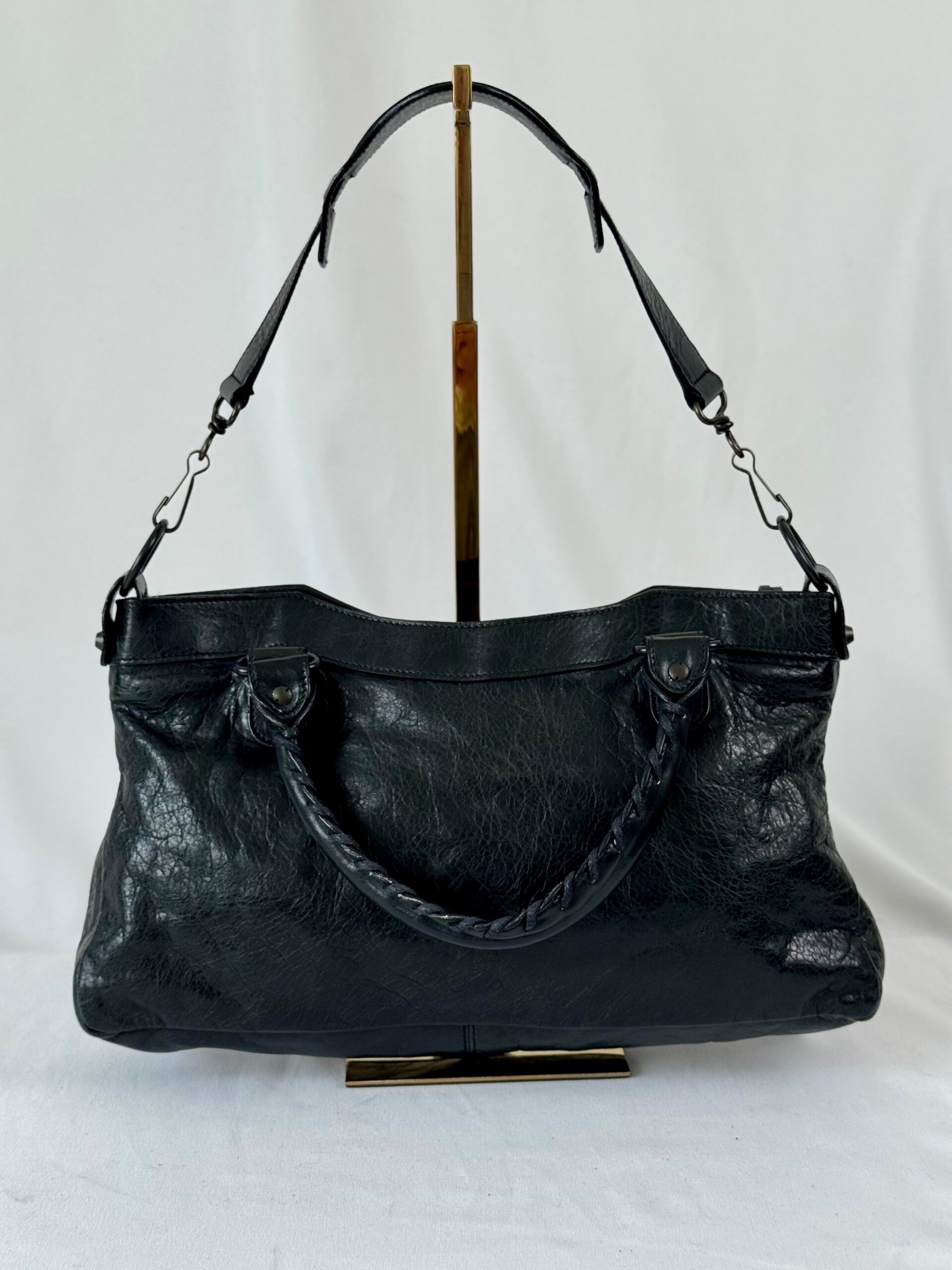 Color: Black arena storico lambskin leather, hand braided handles, brass hardware
