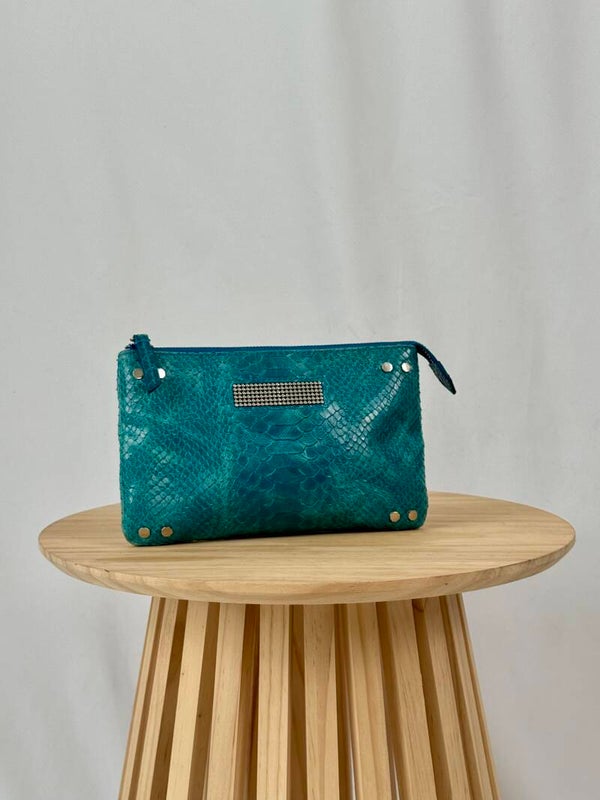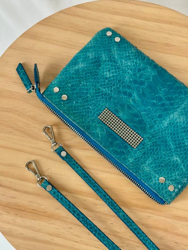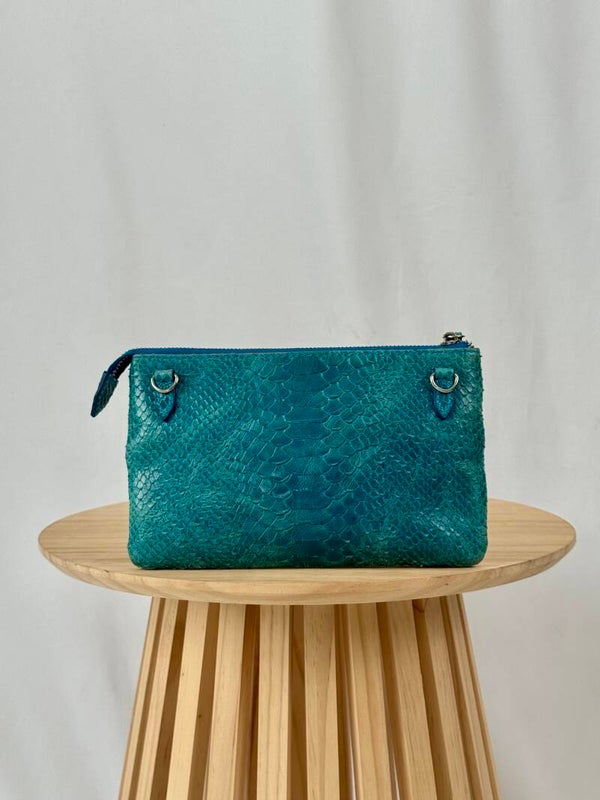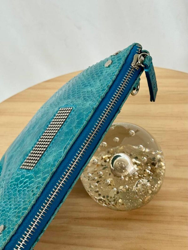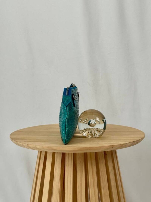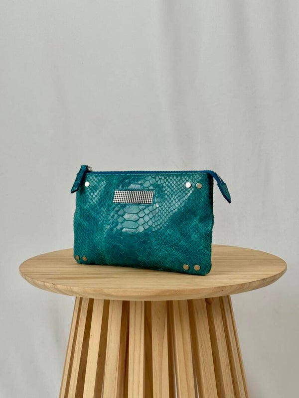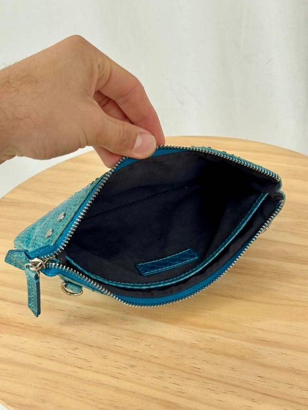 Color: blue croco print with golden hardware