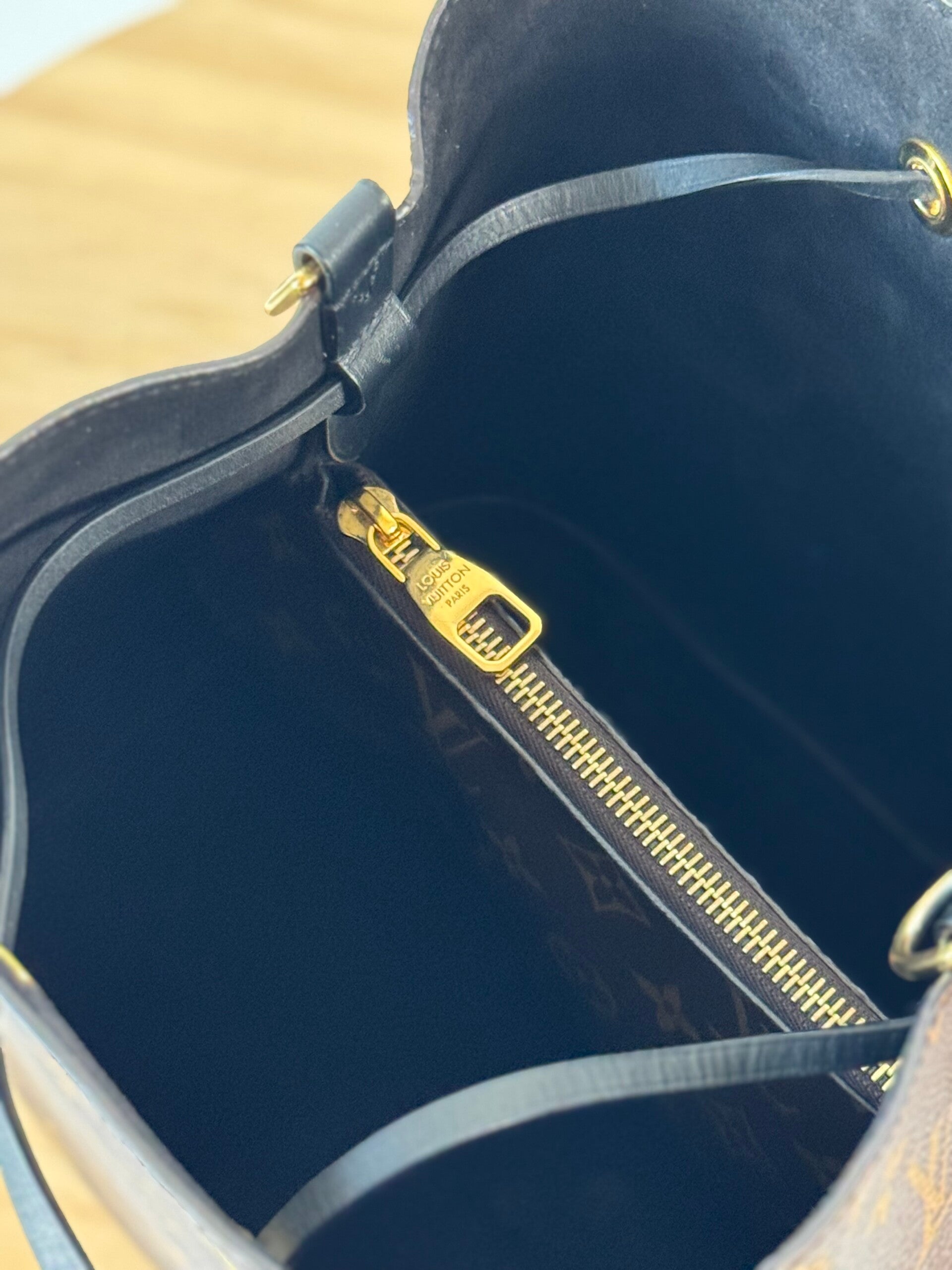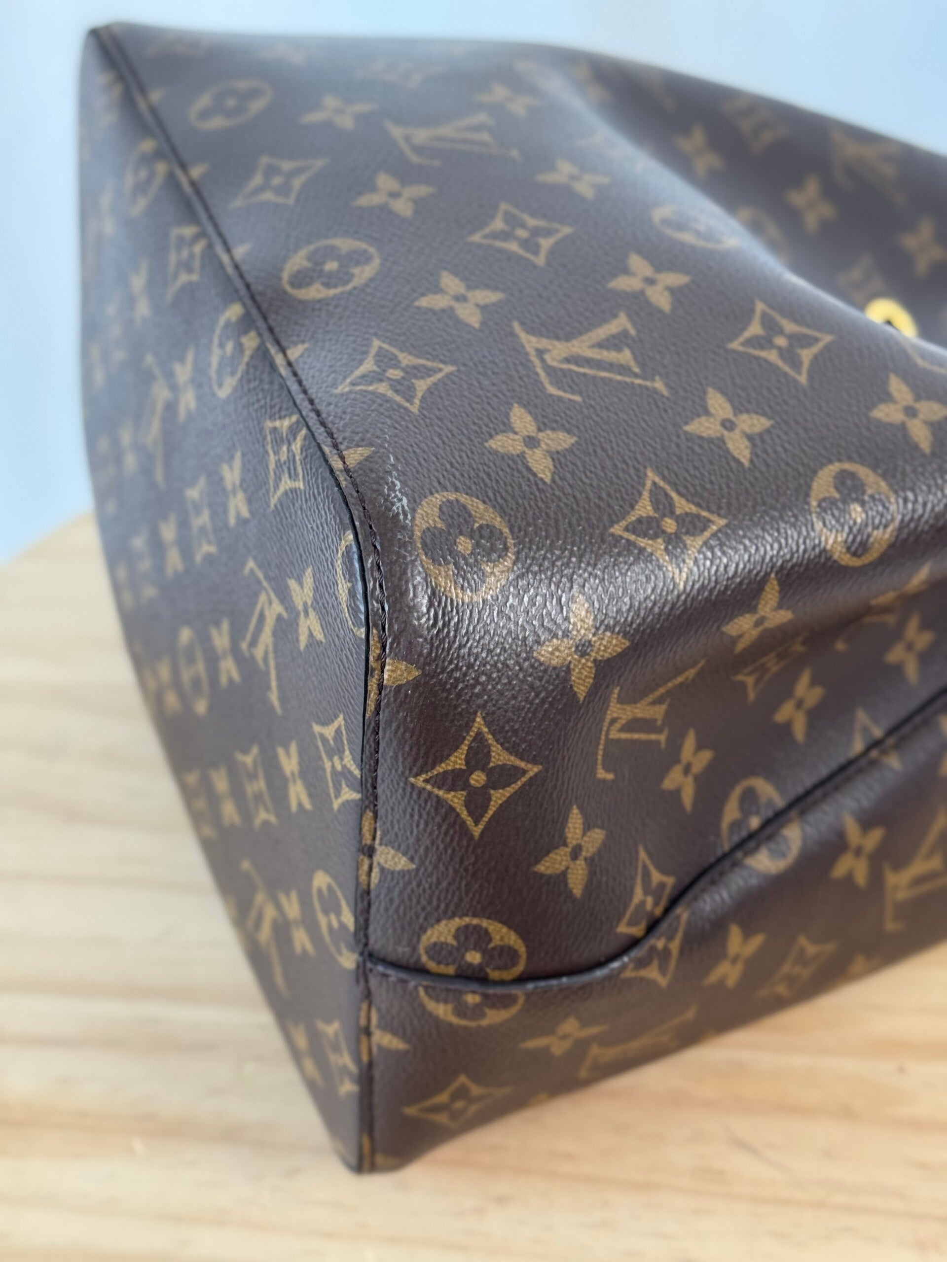 Color: Famous monogram canvas with black cowhide leather trim and matching bonded lining.