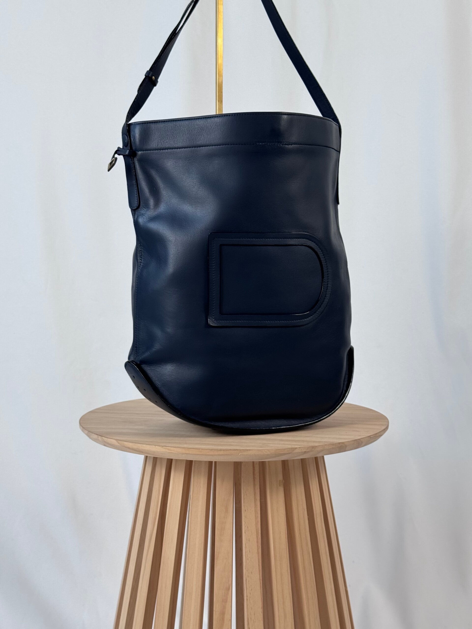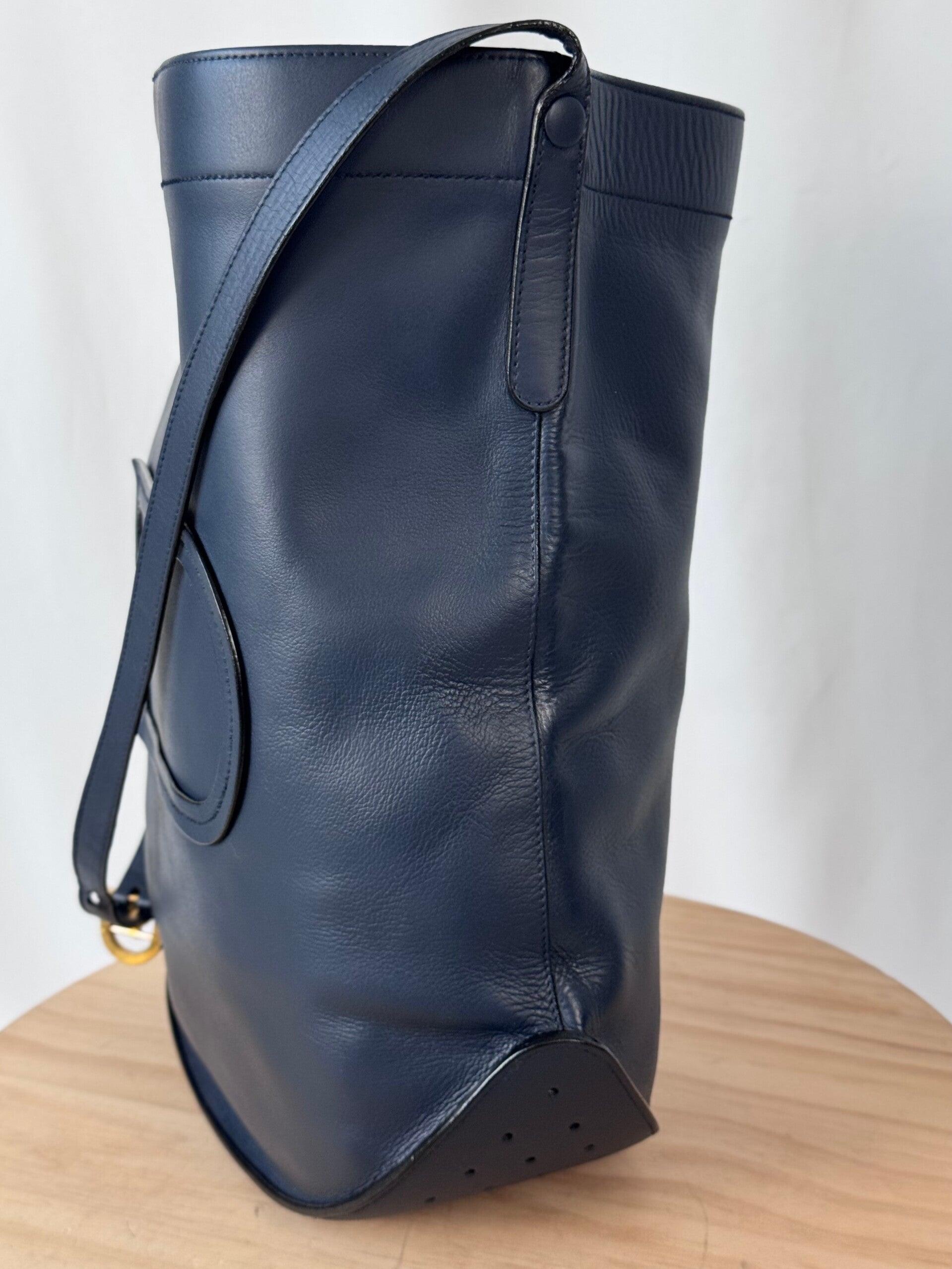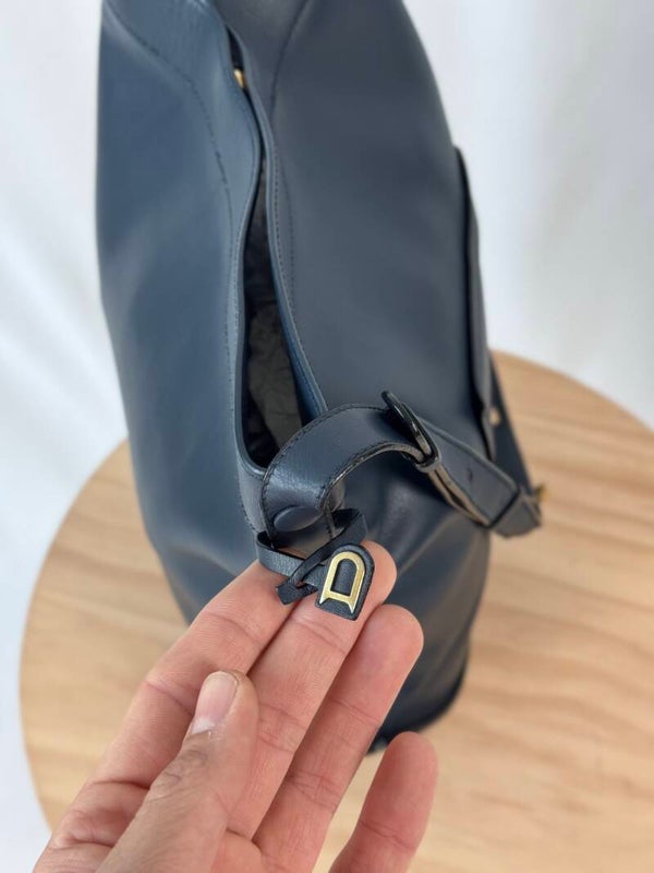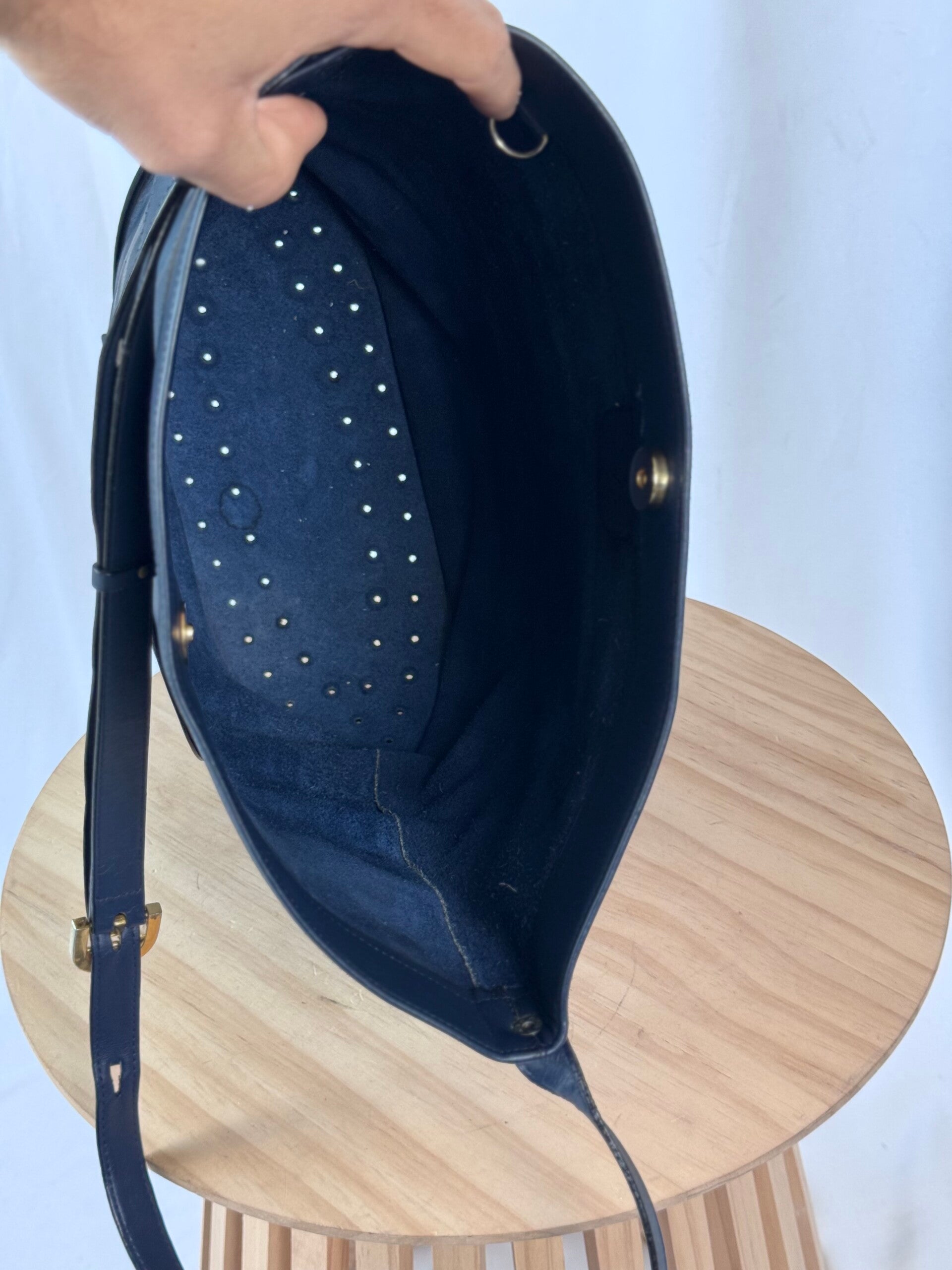 Color: beautiful mid-blue color (depends on the light) with golden hardware and dark trimline