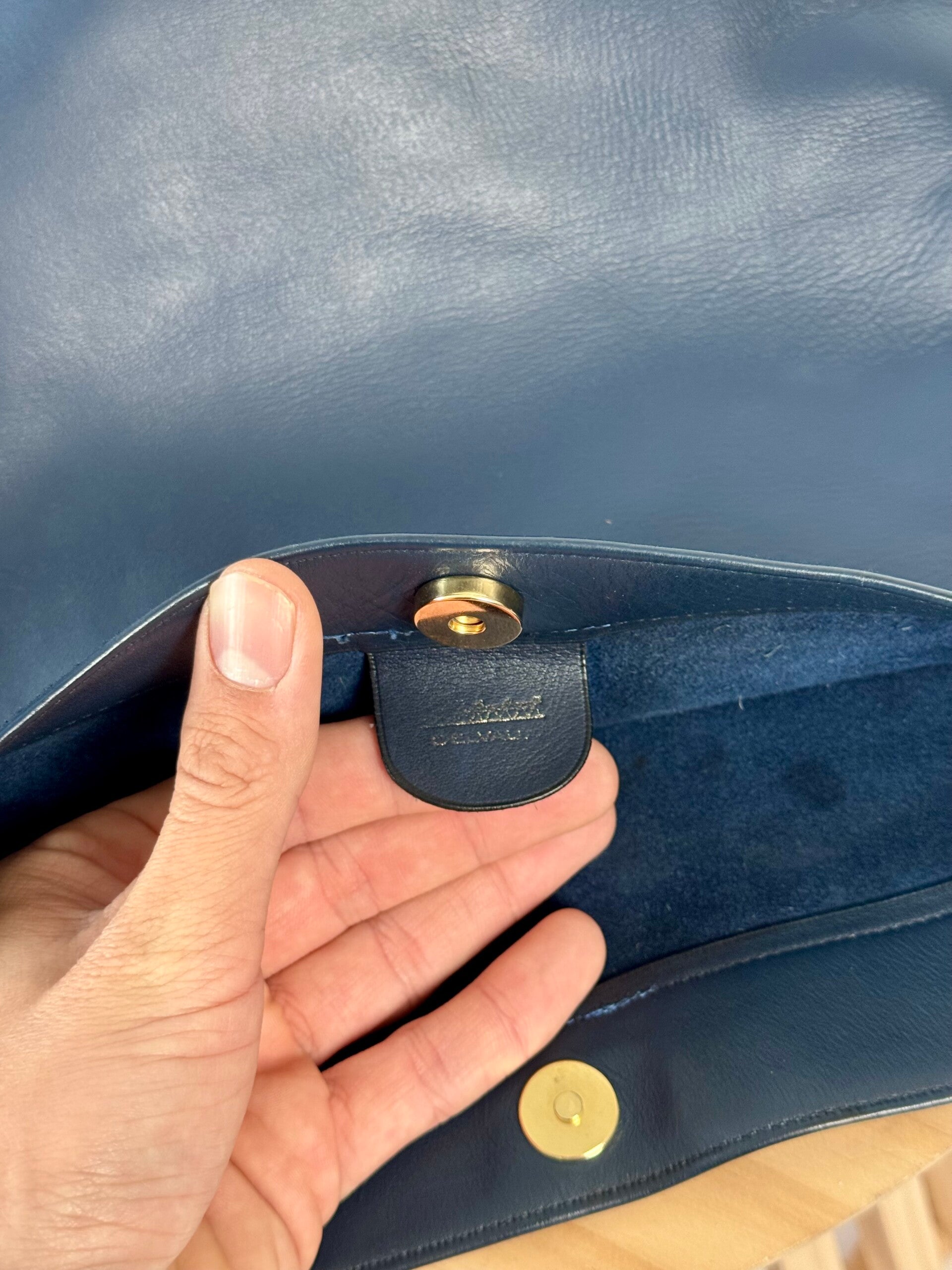 Condition: This is a vintage 70's bag. The leather of this bag had a complete restoration. Trimline has been renewed. Inside has been cleaned but shows signs of earlier use. Hardware shows discoloration (minimal); magnet has been renewed. Logo is faded a bit.