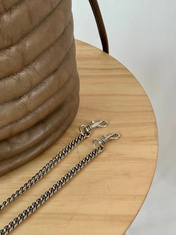 Color: khaki smooth leather, silver chain and silver hardware