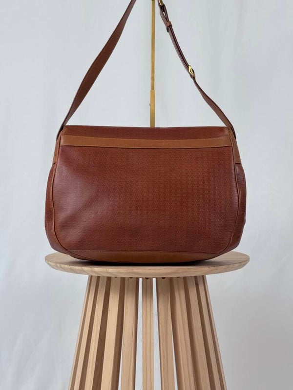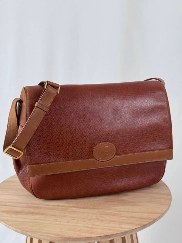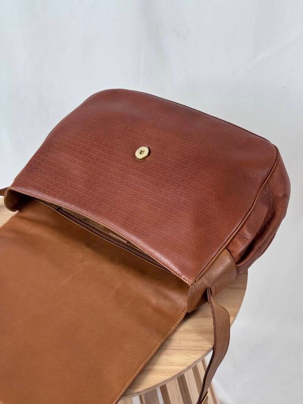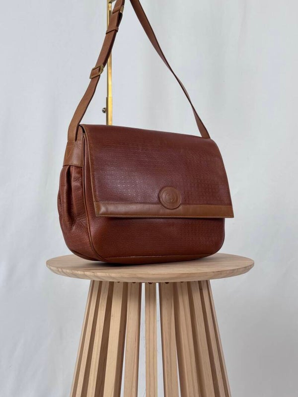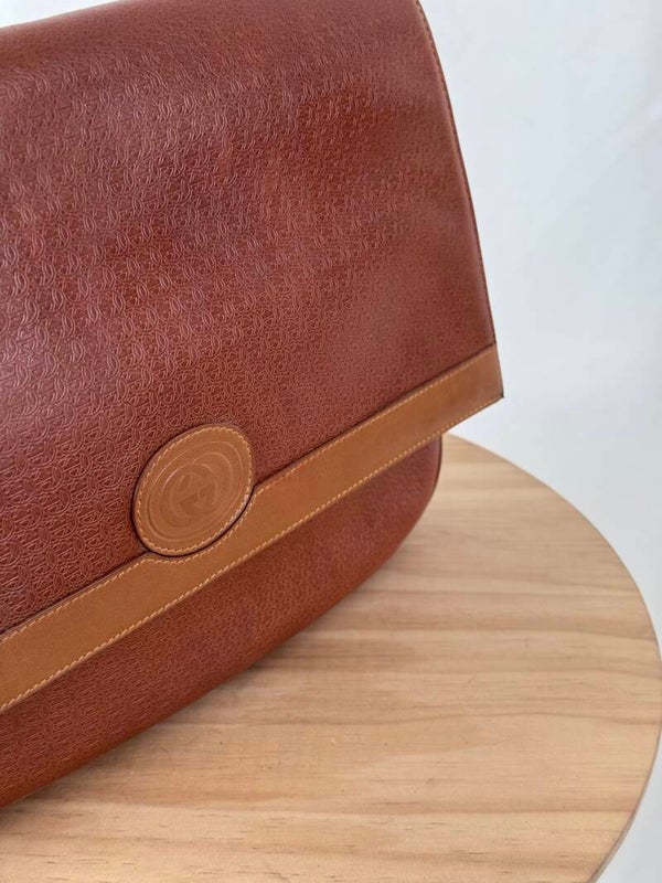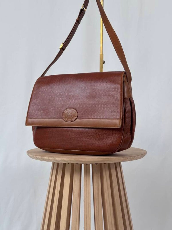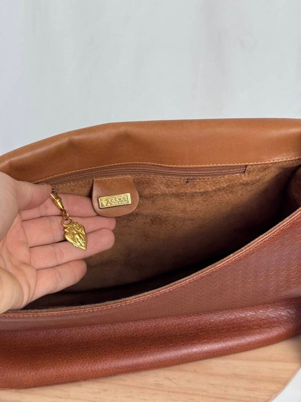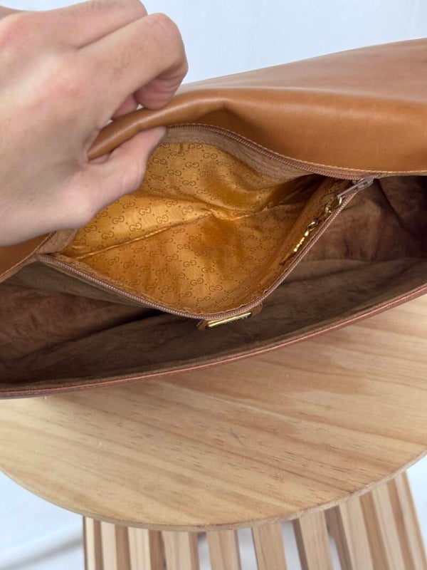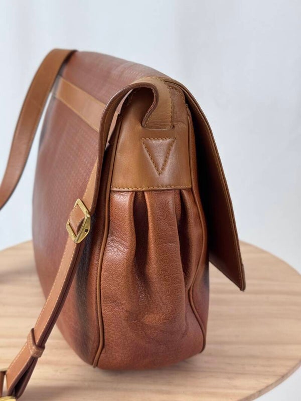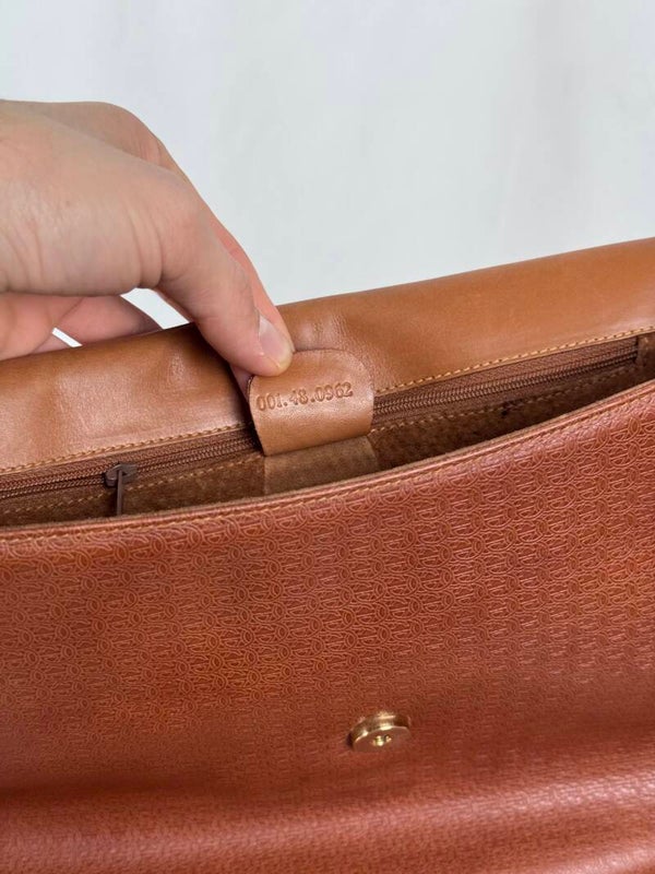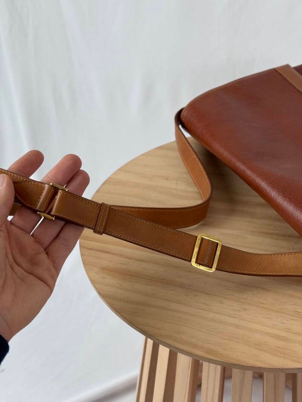 Condition: This is a vintage 70-80's sling bag in a wonderful condition. Leather has been completely cleaned and treated but shows signs of earlier use and discolorations. Inside suede has been cleaned but shows pen marks next to the logo. Hardware shows minimal discoloration.