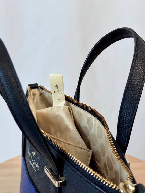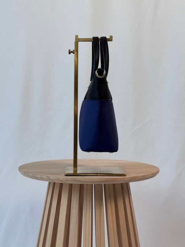 Color: cobalt blue and black calfskin leather with rosegolden hardware
