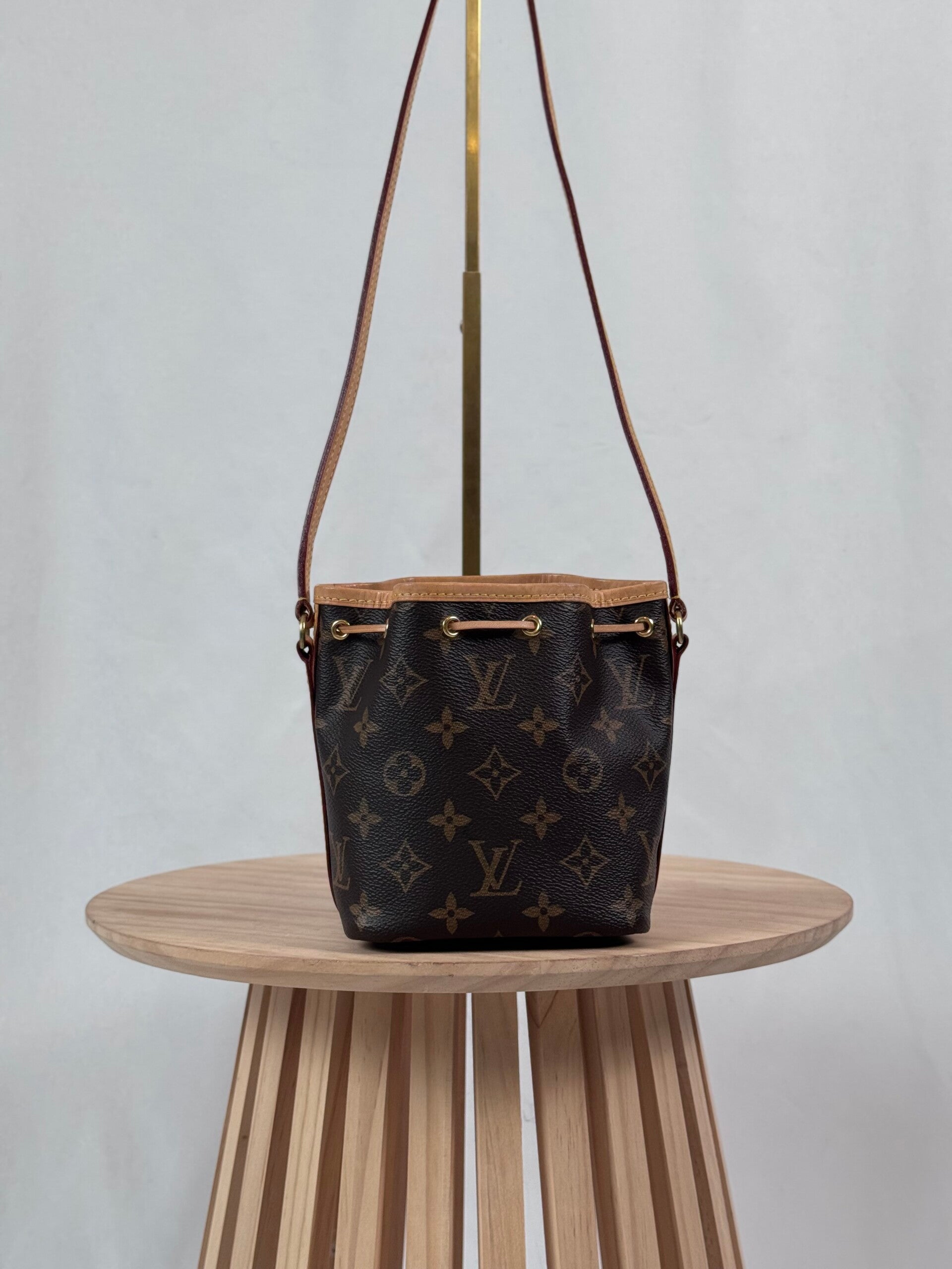 Color: Monogram print, vachetta edges, trim and shoulder strap. Brown fabric inside.