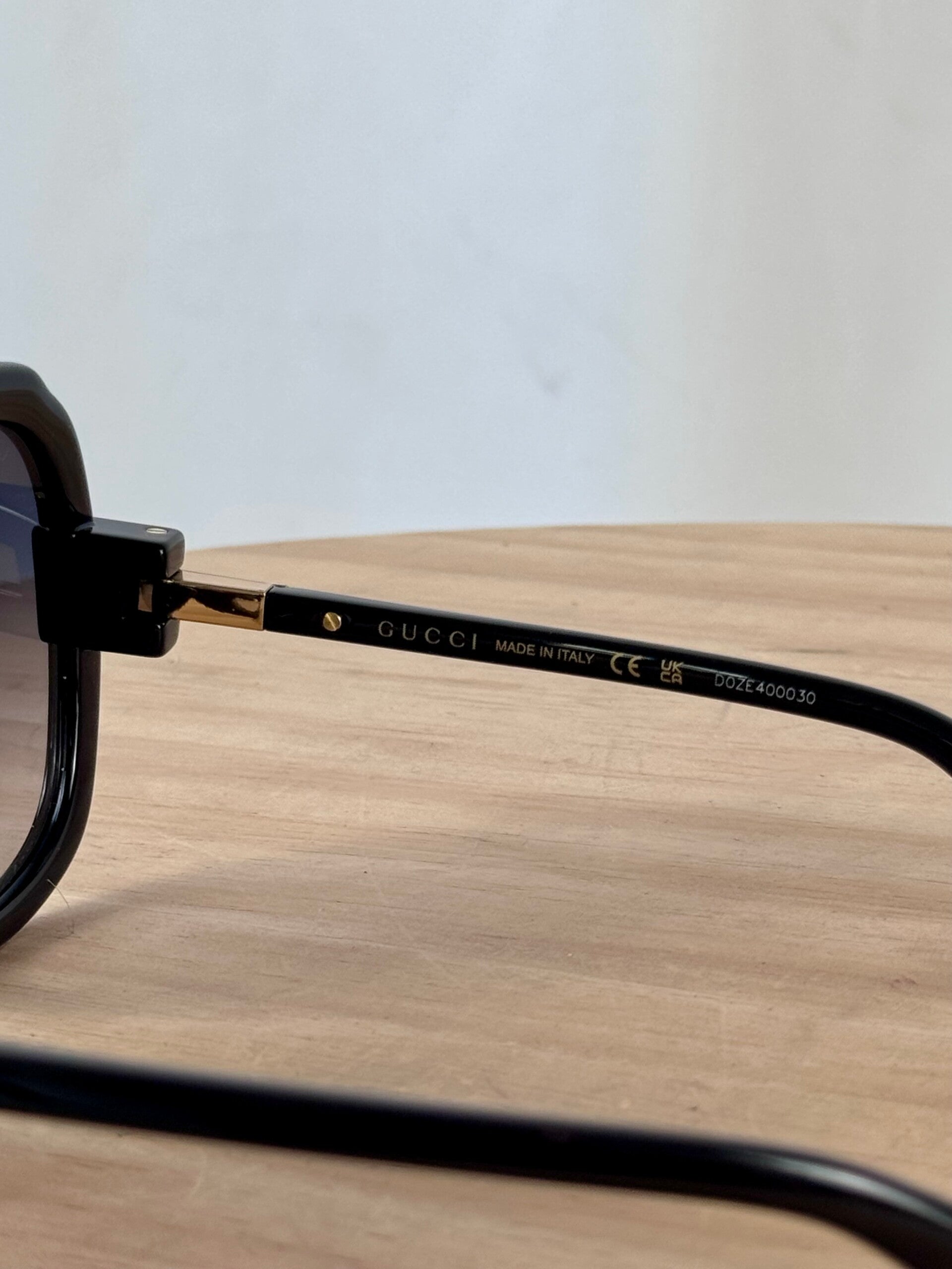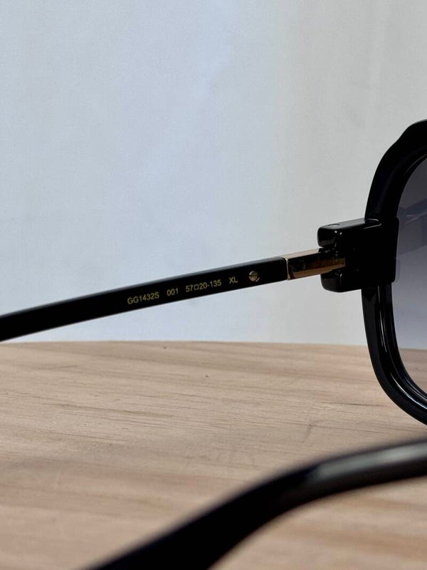 Color: Black frame with golden details, dégradé grey glasses in plastic