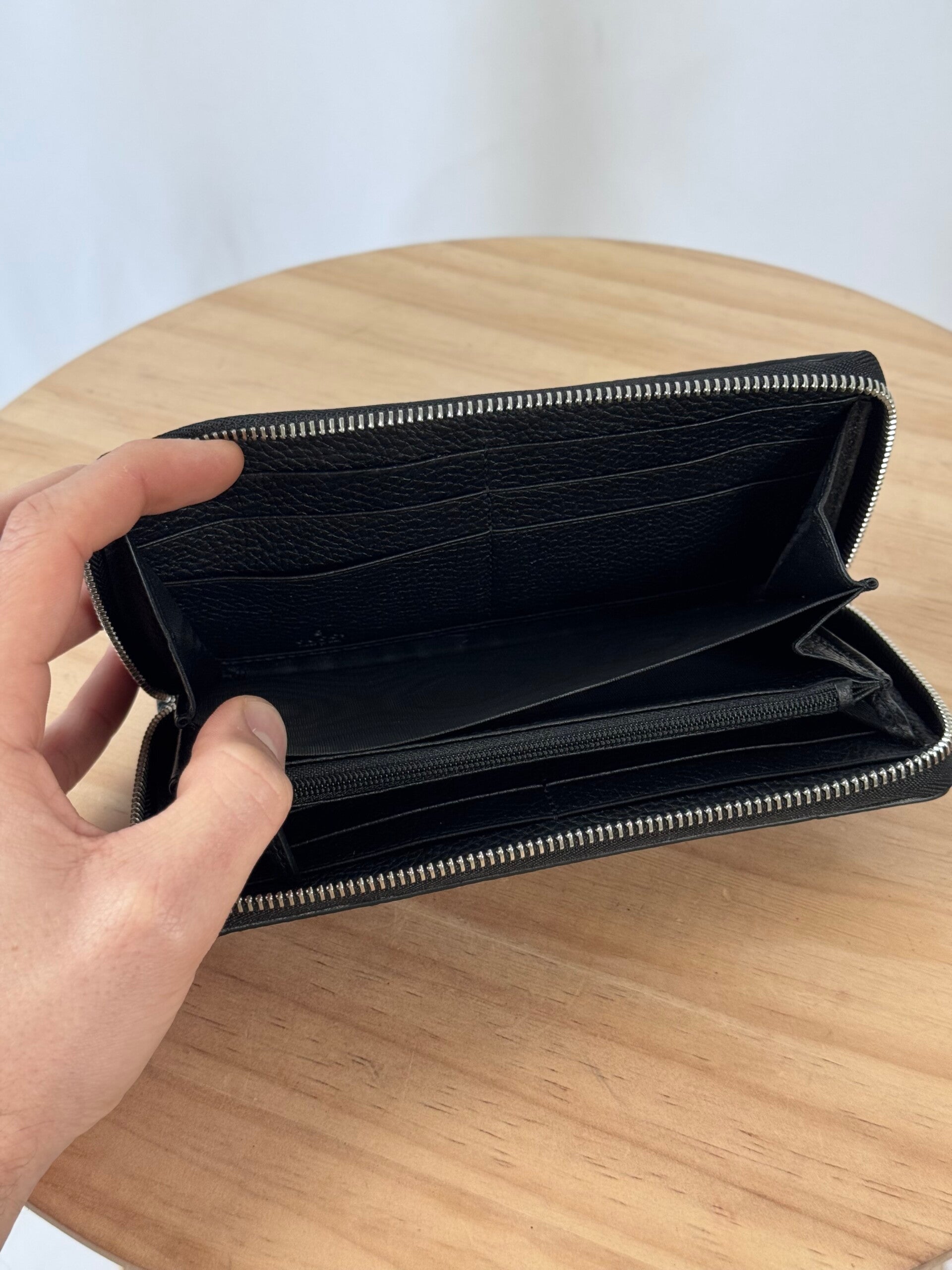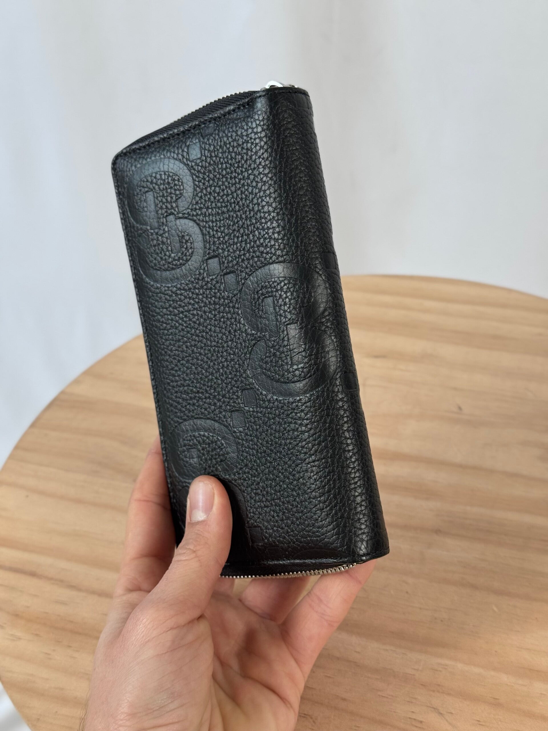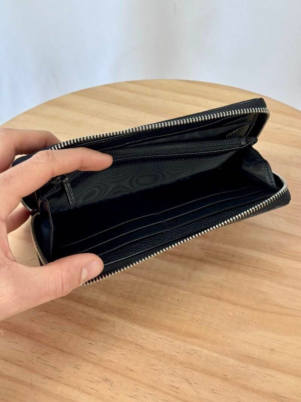 Color: Black GG embossed leather with silver hardware zipper & moiré lining.