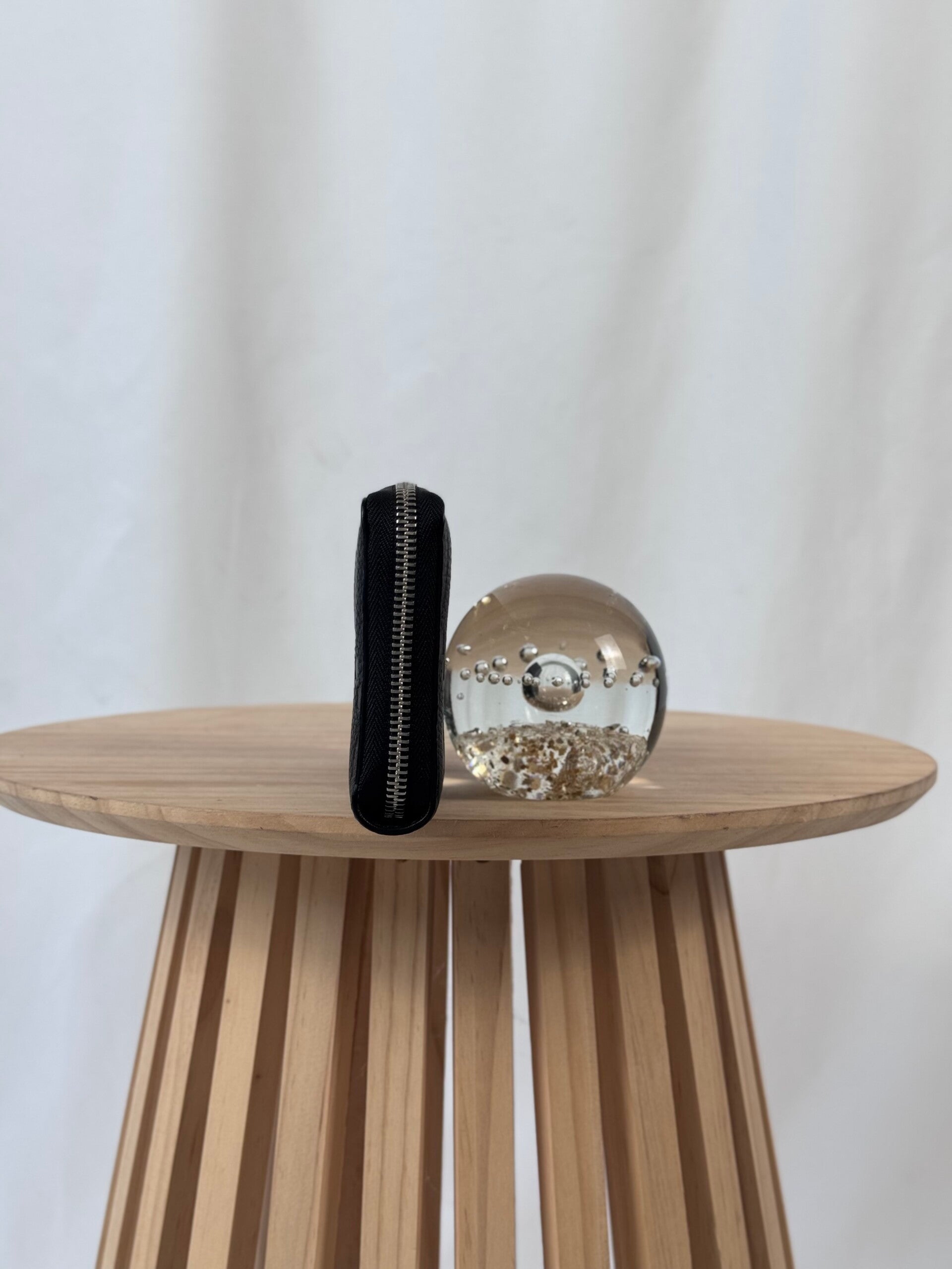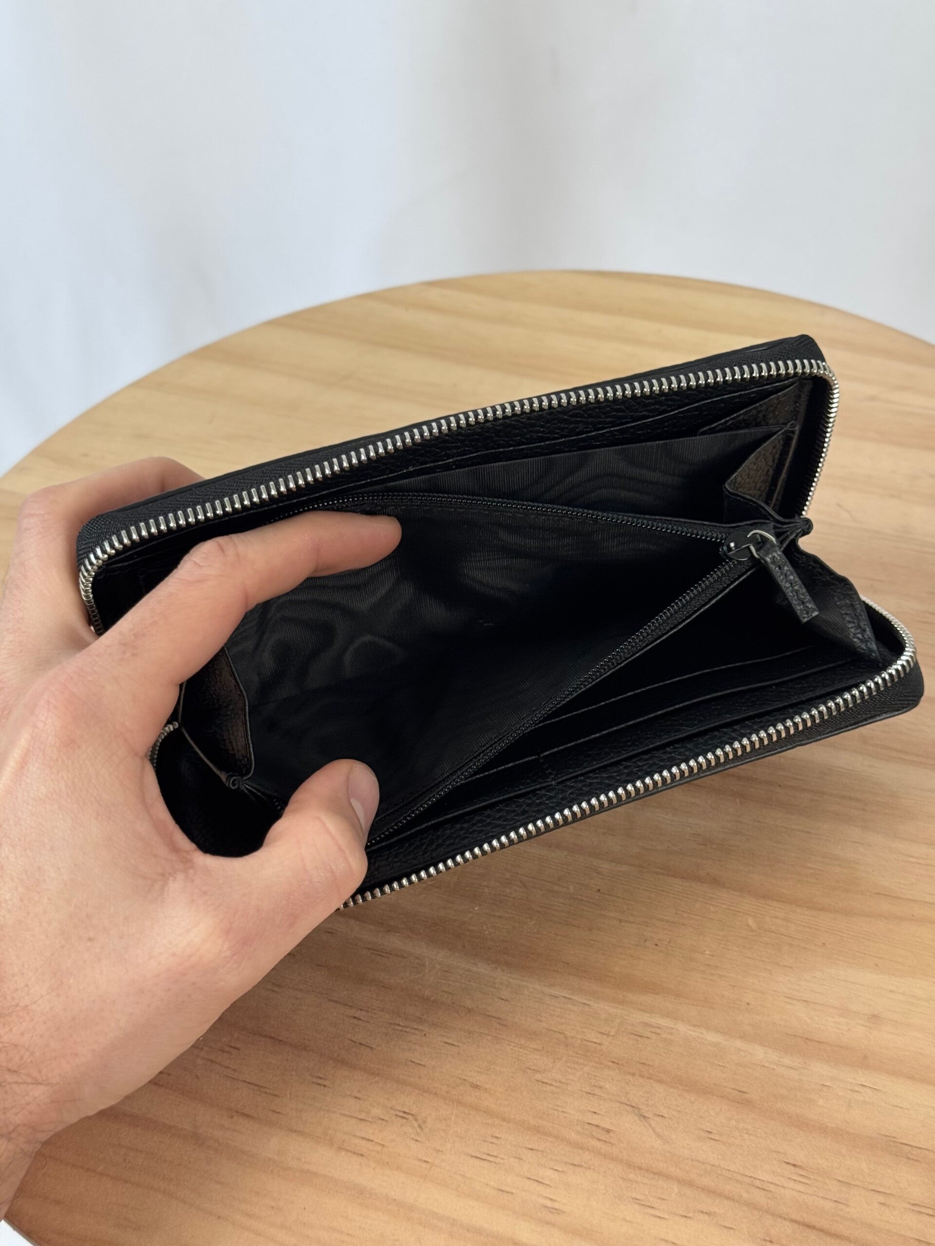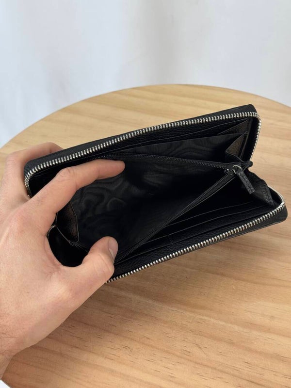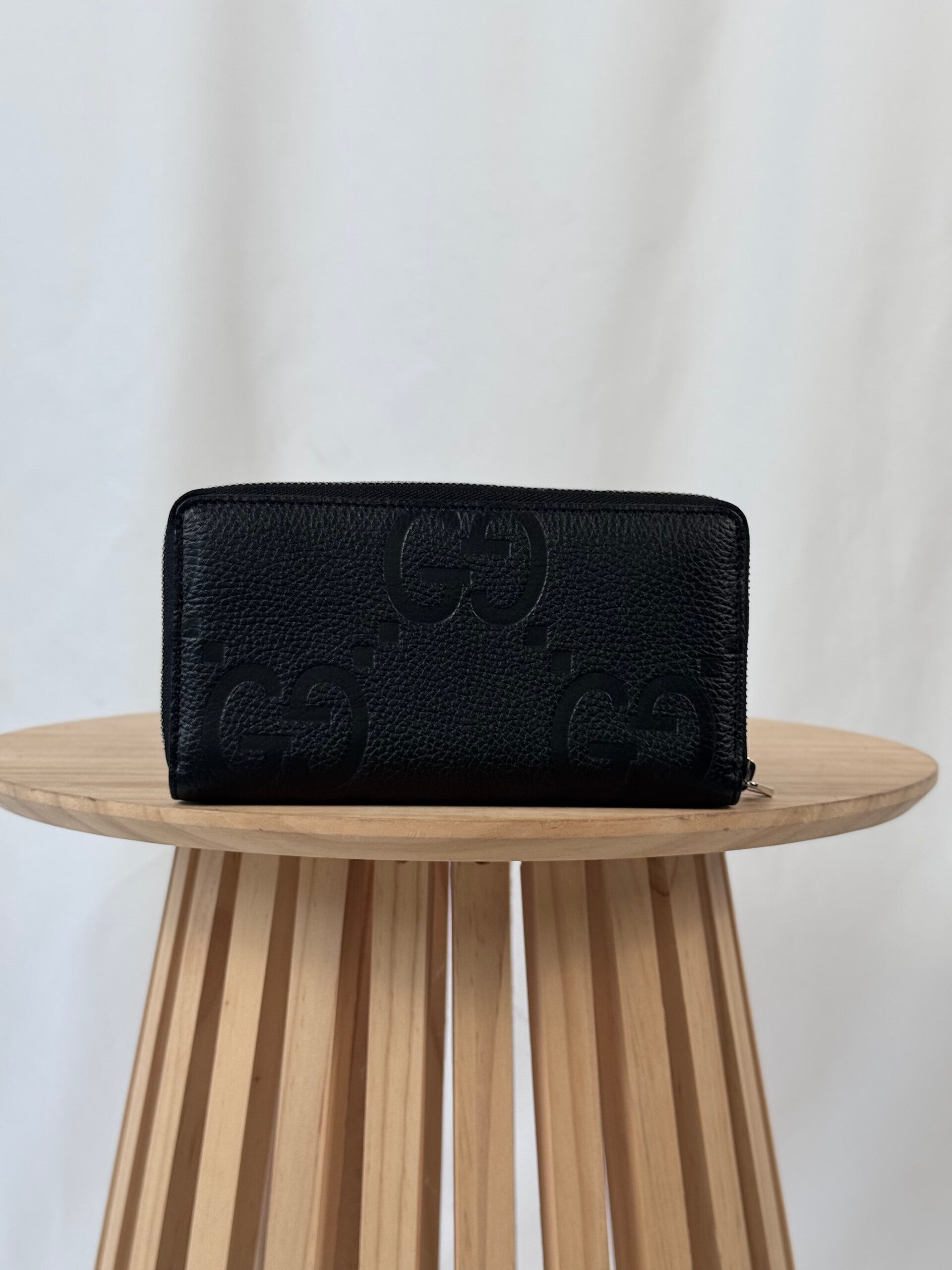 Color: Black GG embossed leather with silver hardware zipper & moiré lining.