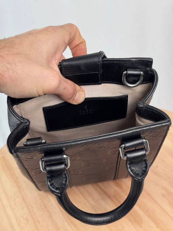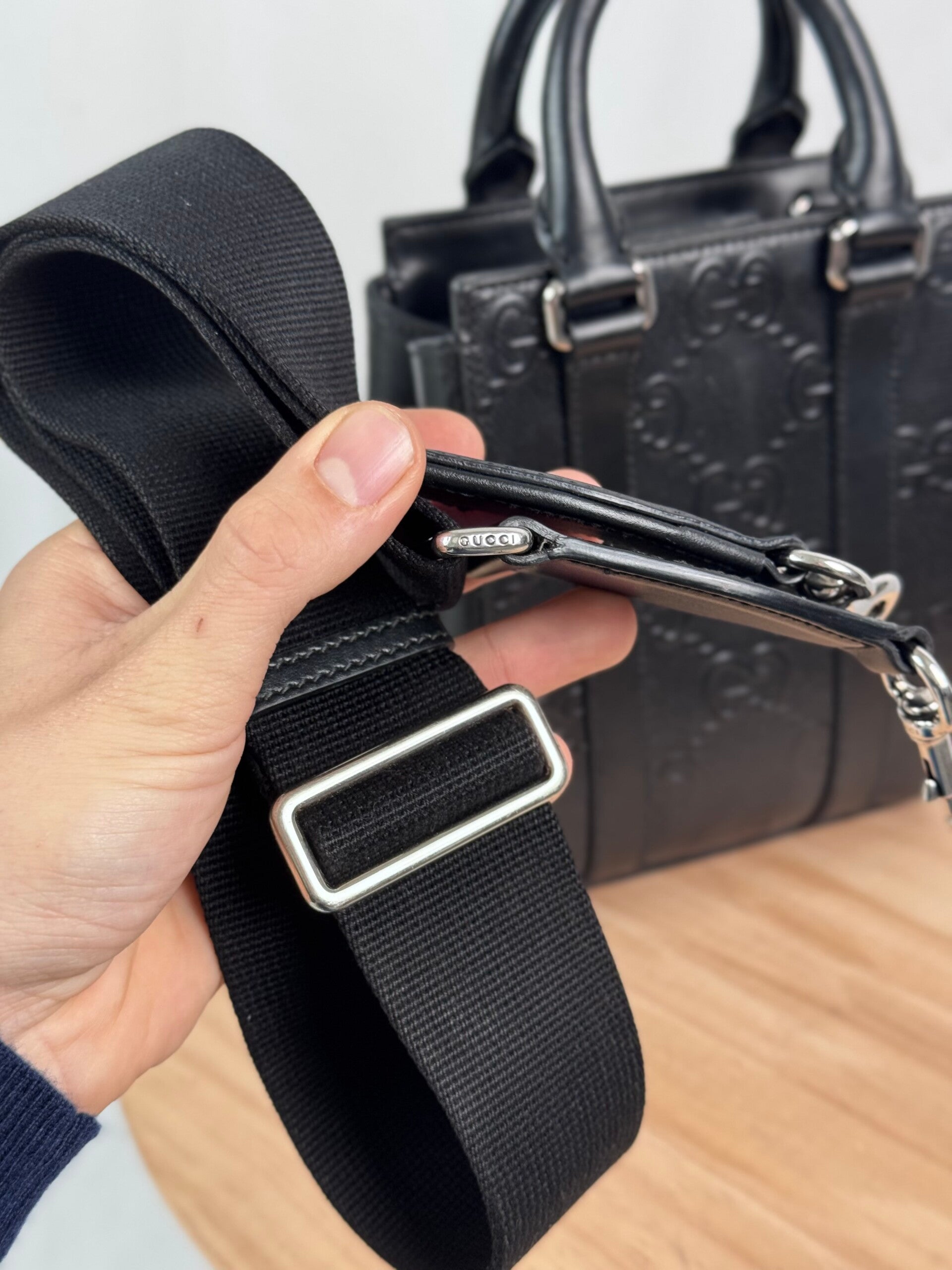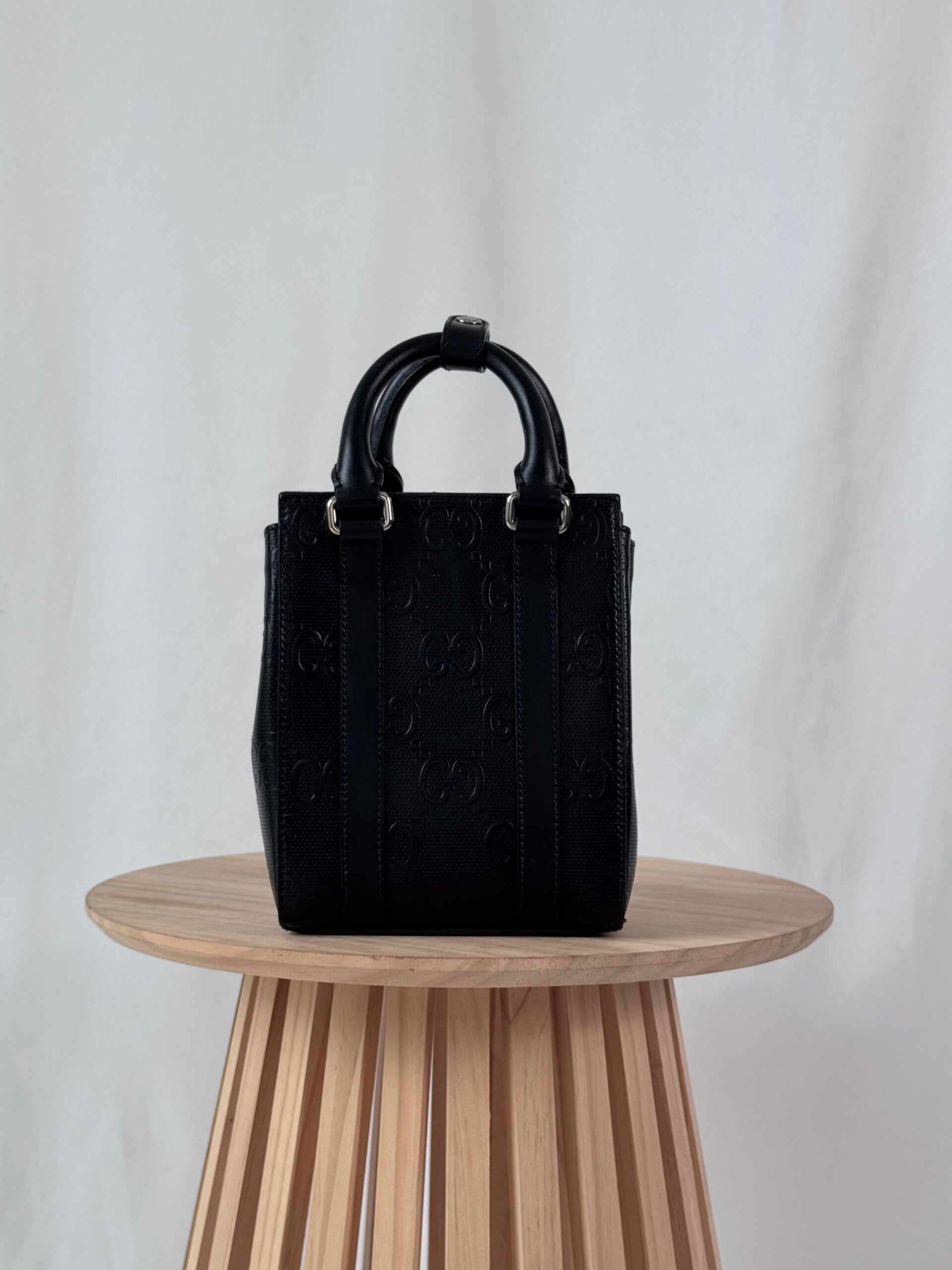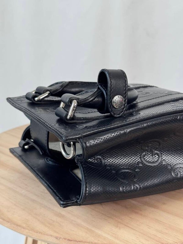 Color: Black perforated GG embossed leather with linen interior and silver hardware