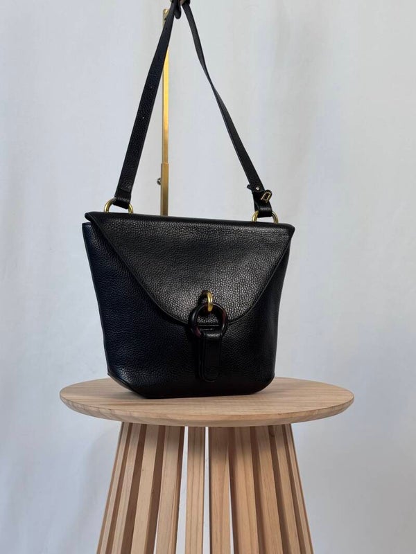 Color: Black heavy grained leather, wooden buckle and golden hardware