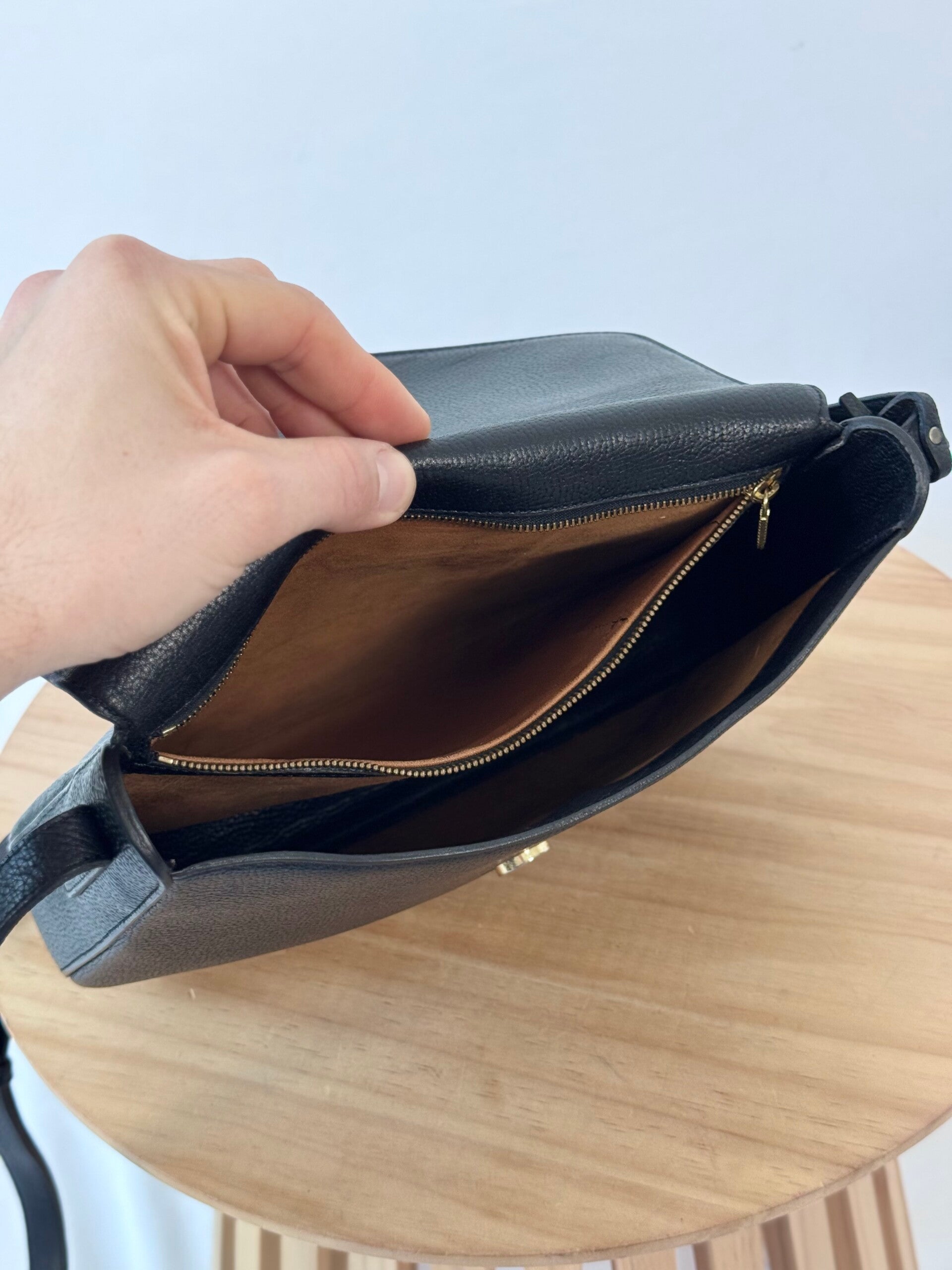 Color: Black jumping calf leather, golden hardware and suède interior
