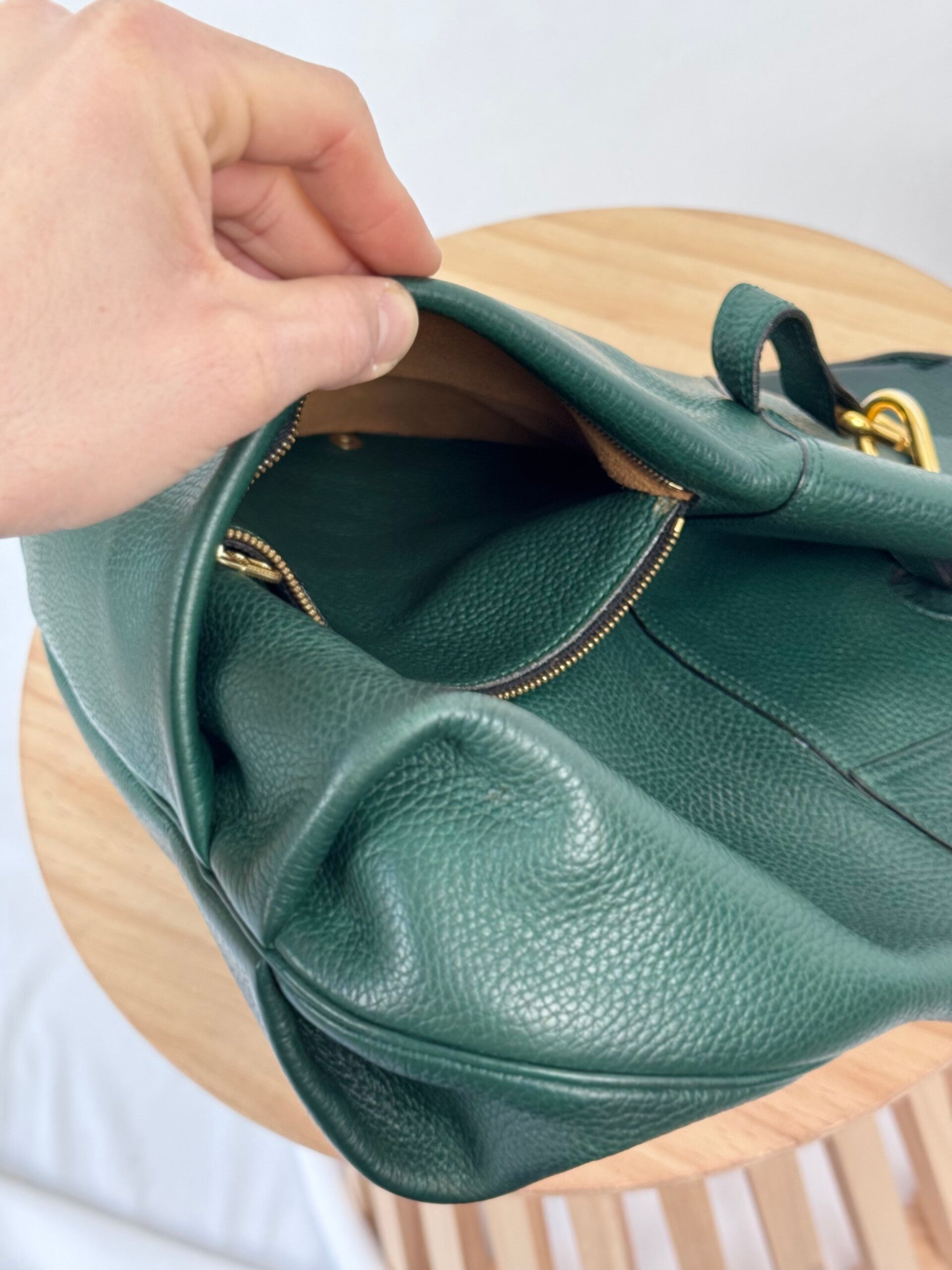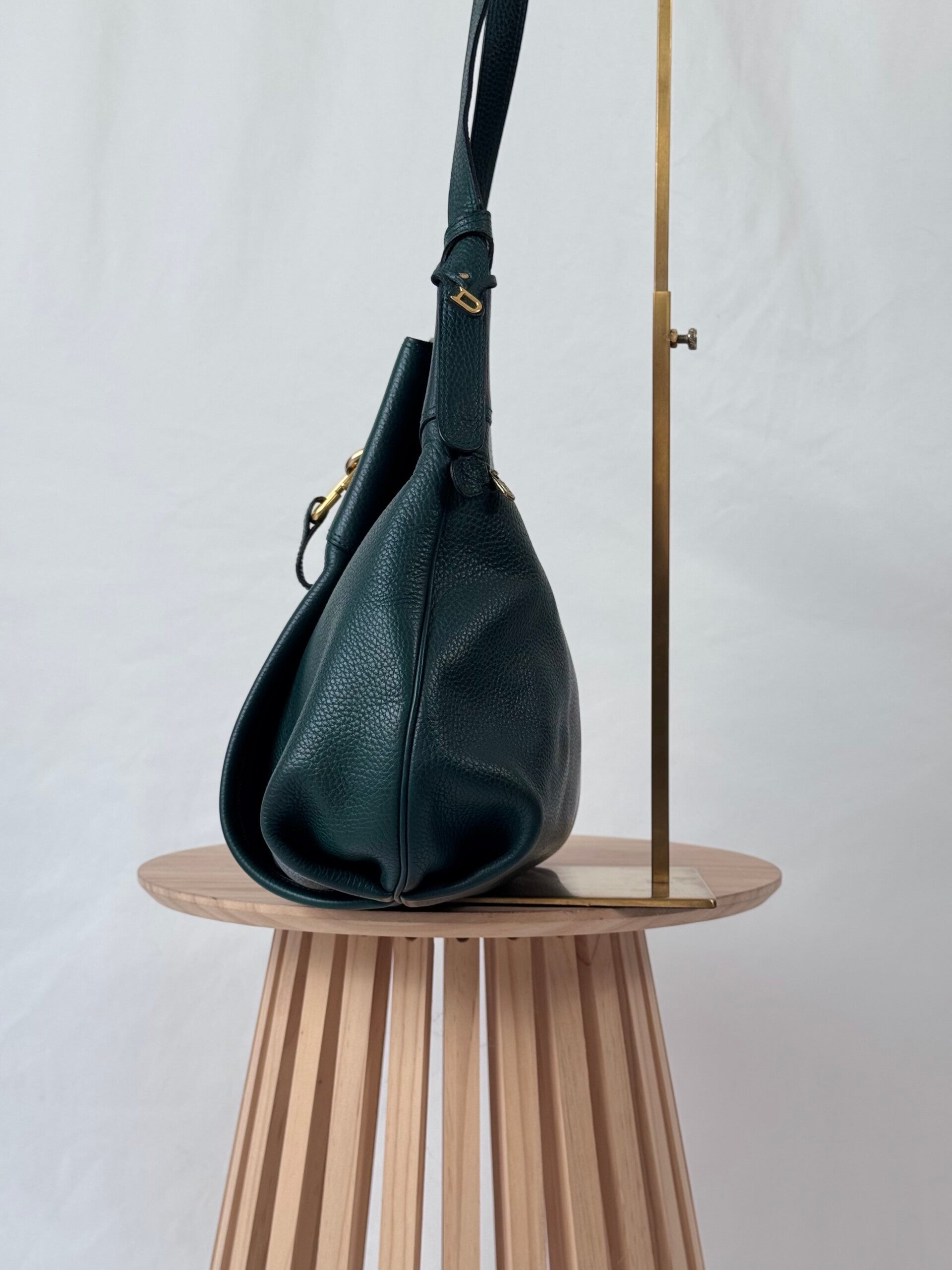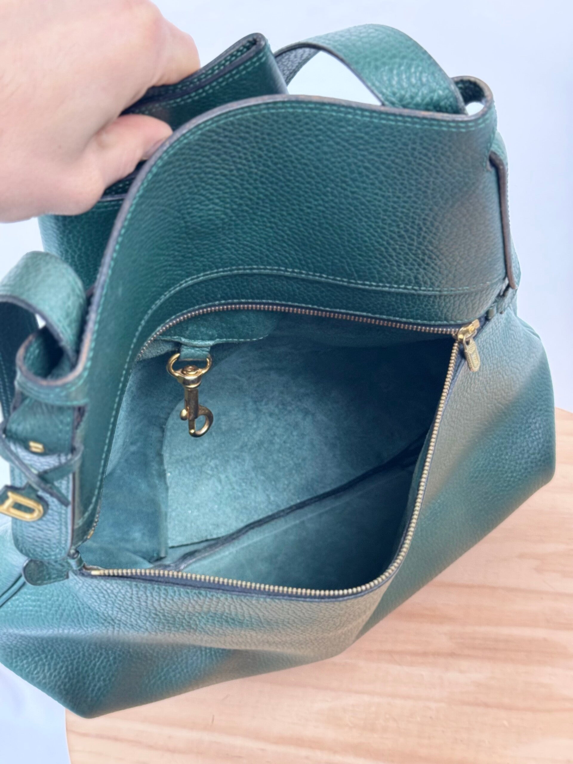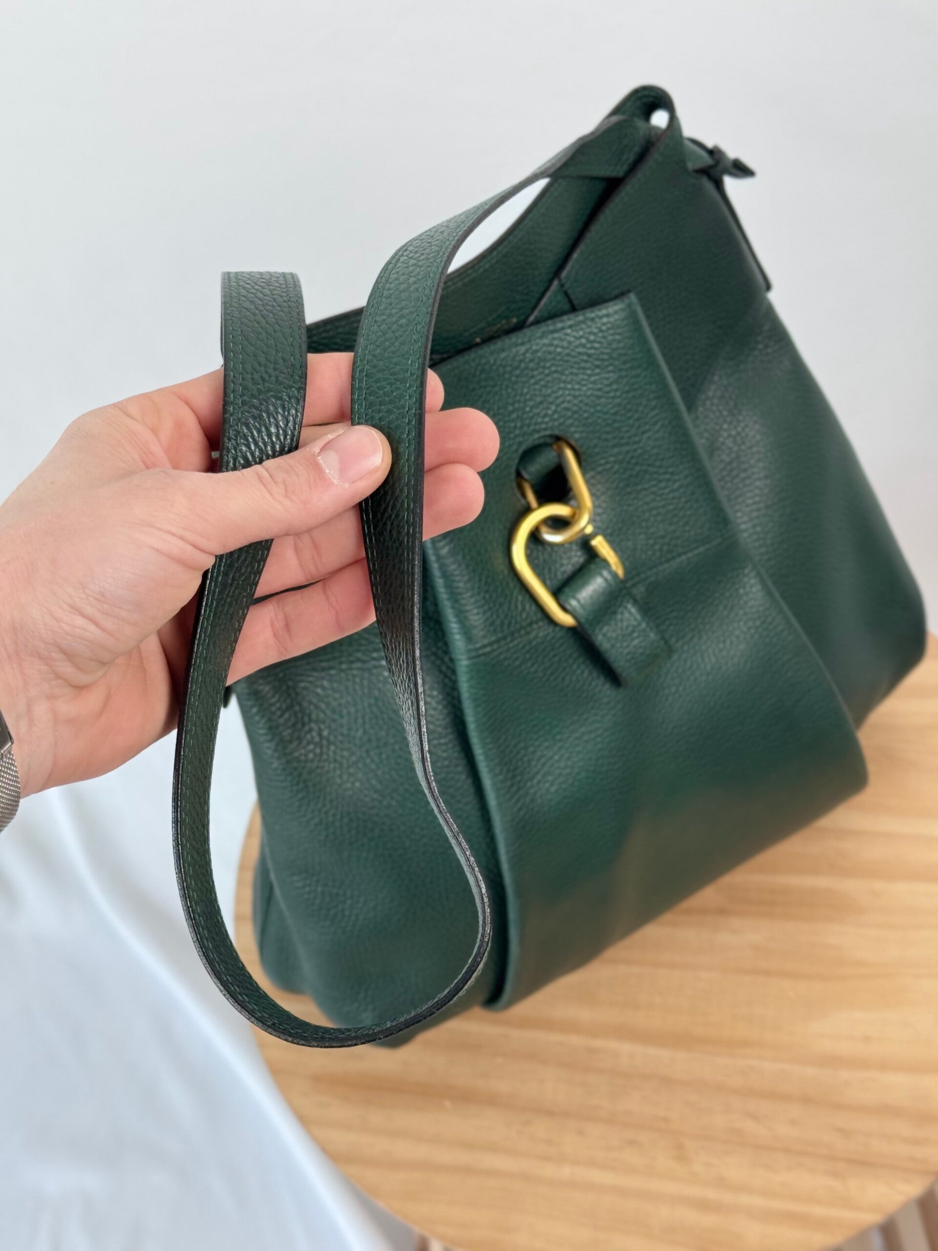 Color: Dark green color with green stitching, dark trimline and golden hardware