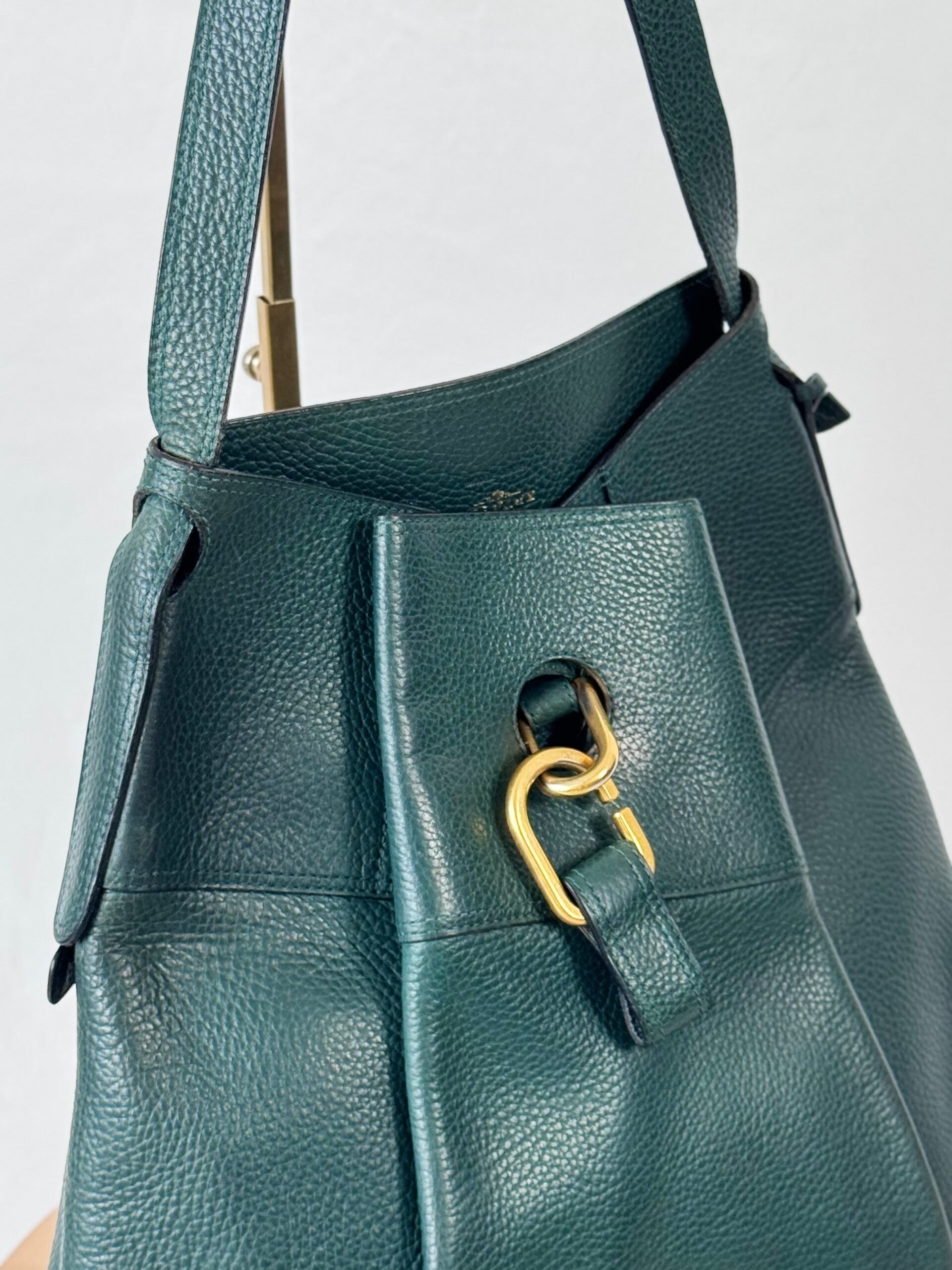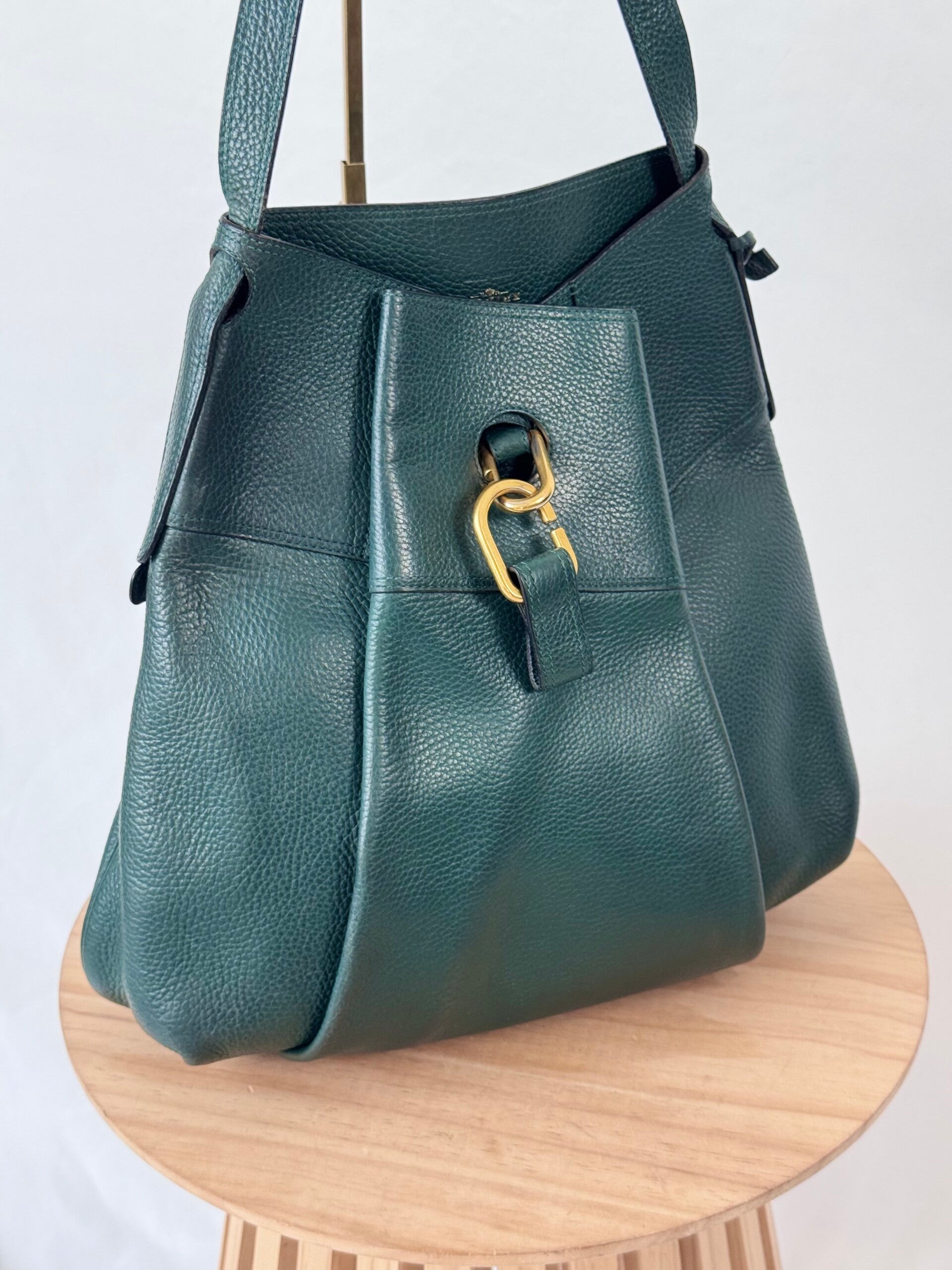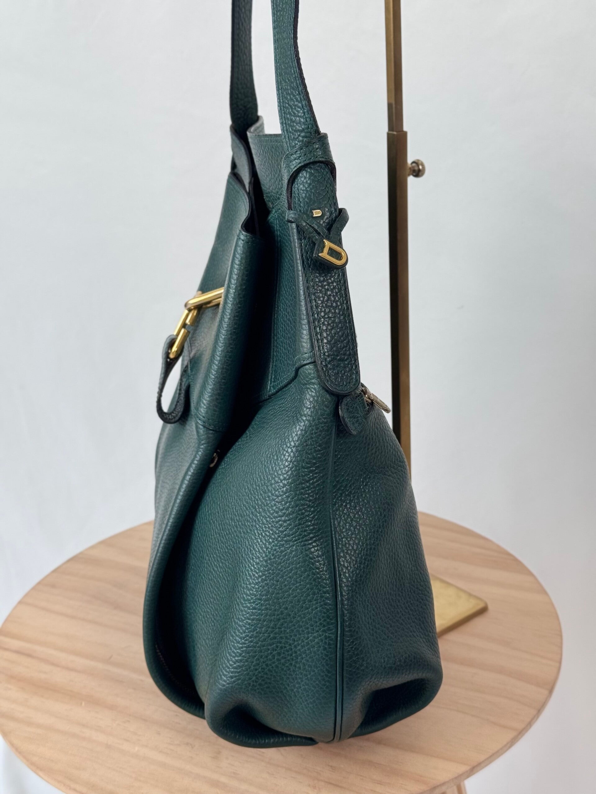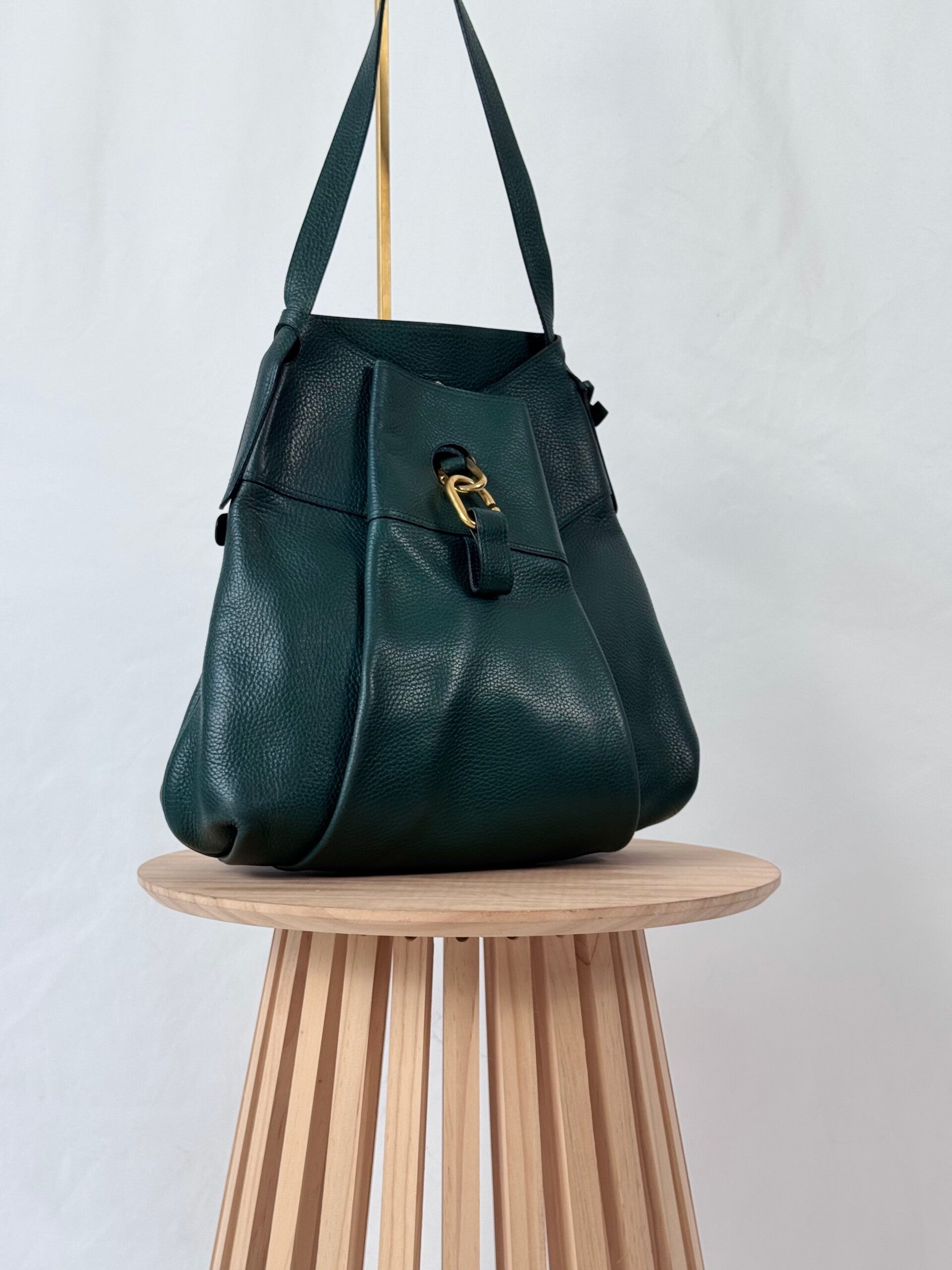 Color: Dark green color with green stitching, dark trimline and golden hardware