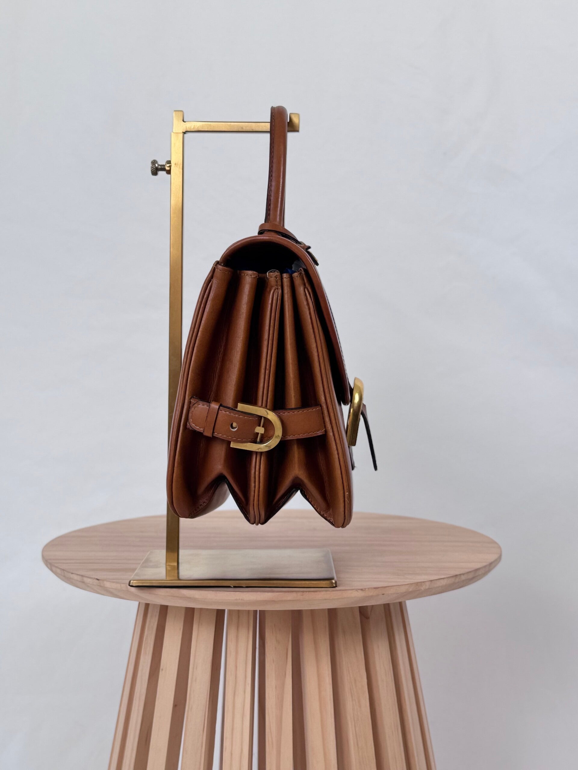 Condition: this is a vintage purse in a very good condition. Leather shows signs of earlier use in a beautiful patine - hardware shows discolorations. Inside has been cleaned but shows minimal signs of earlier use. There is a minimal odor.