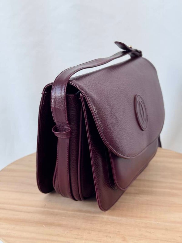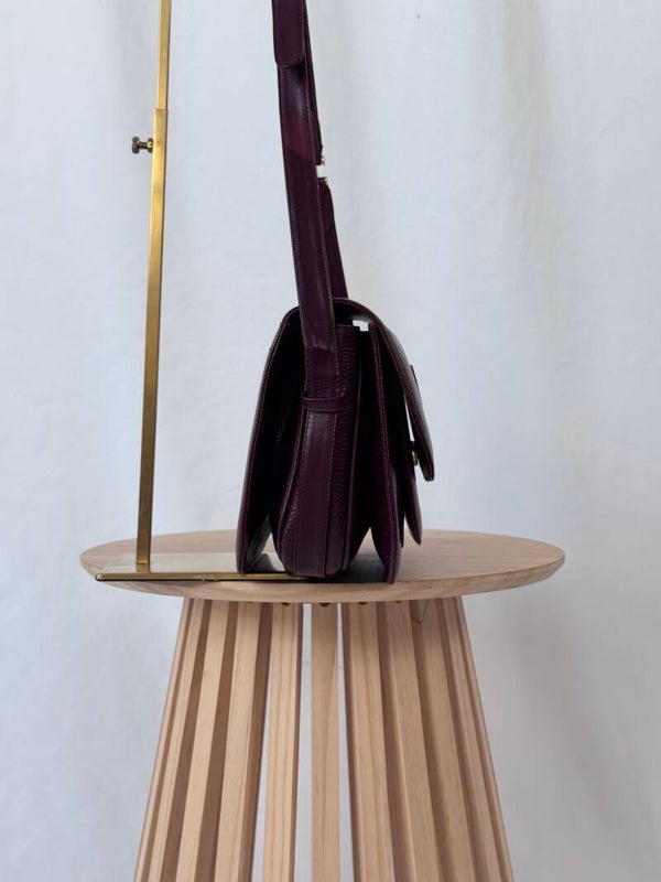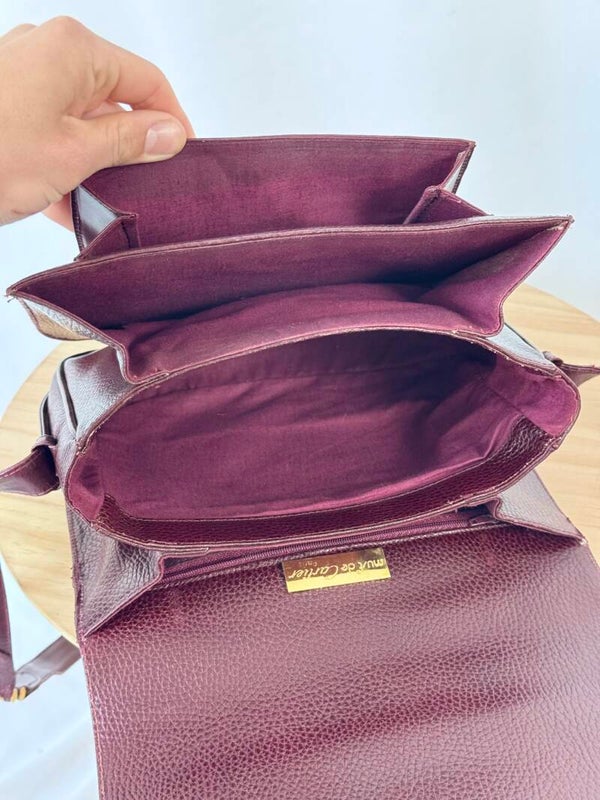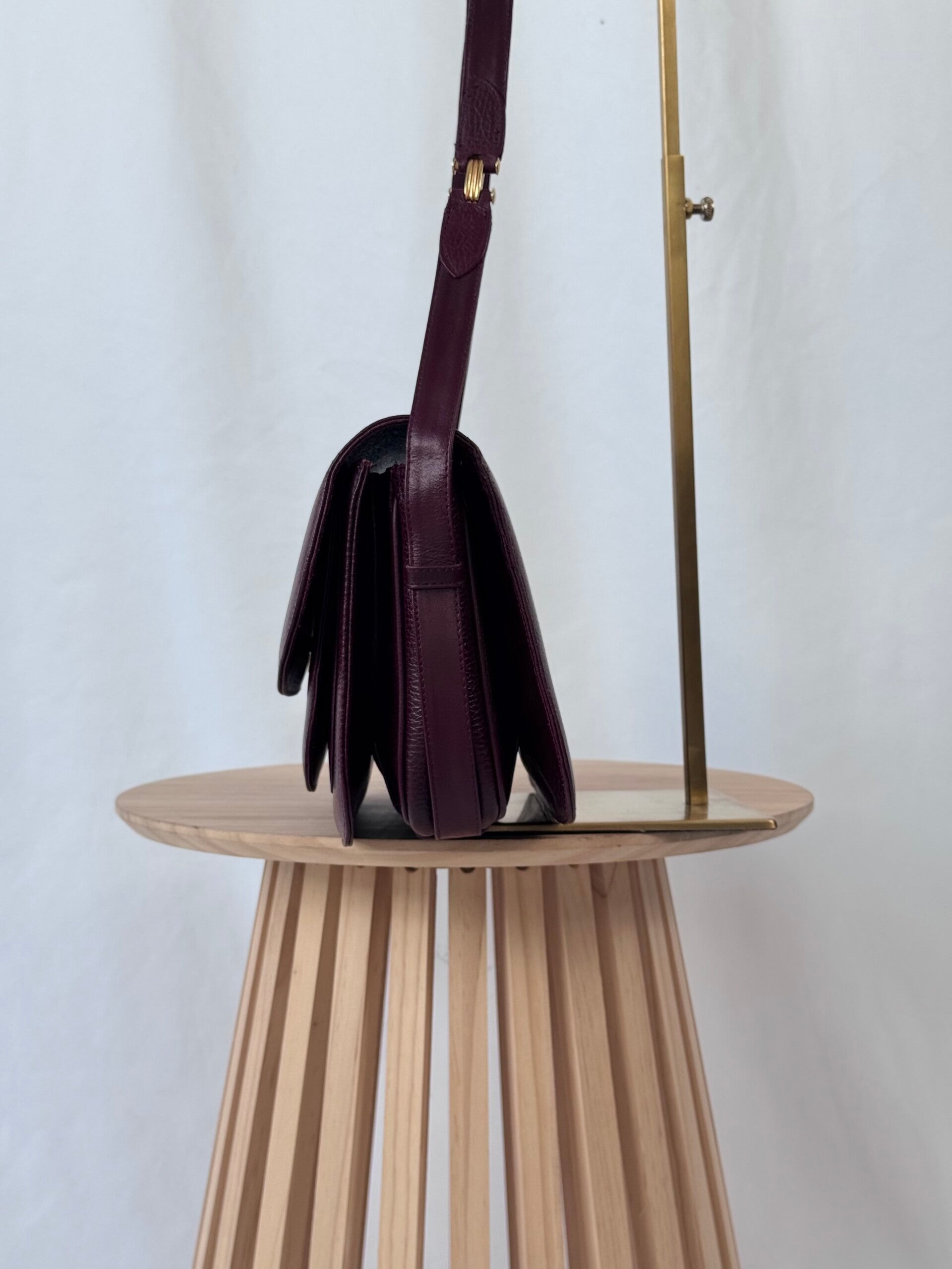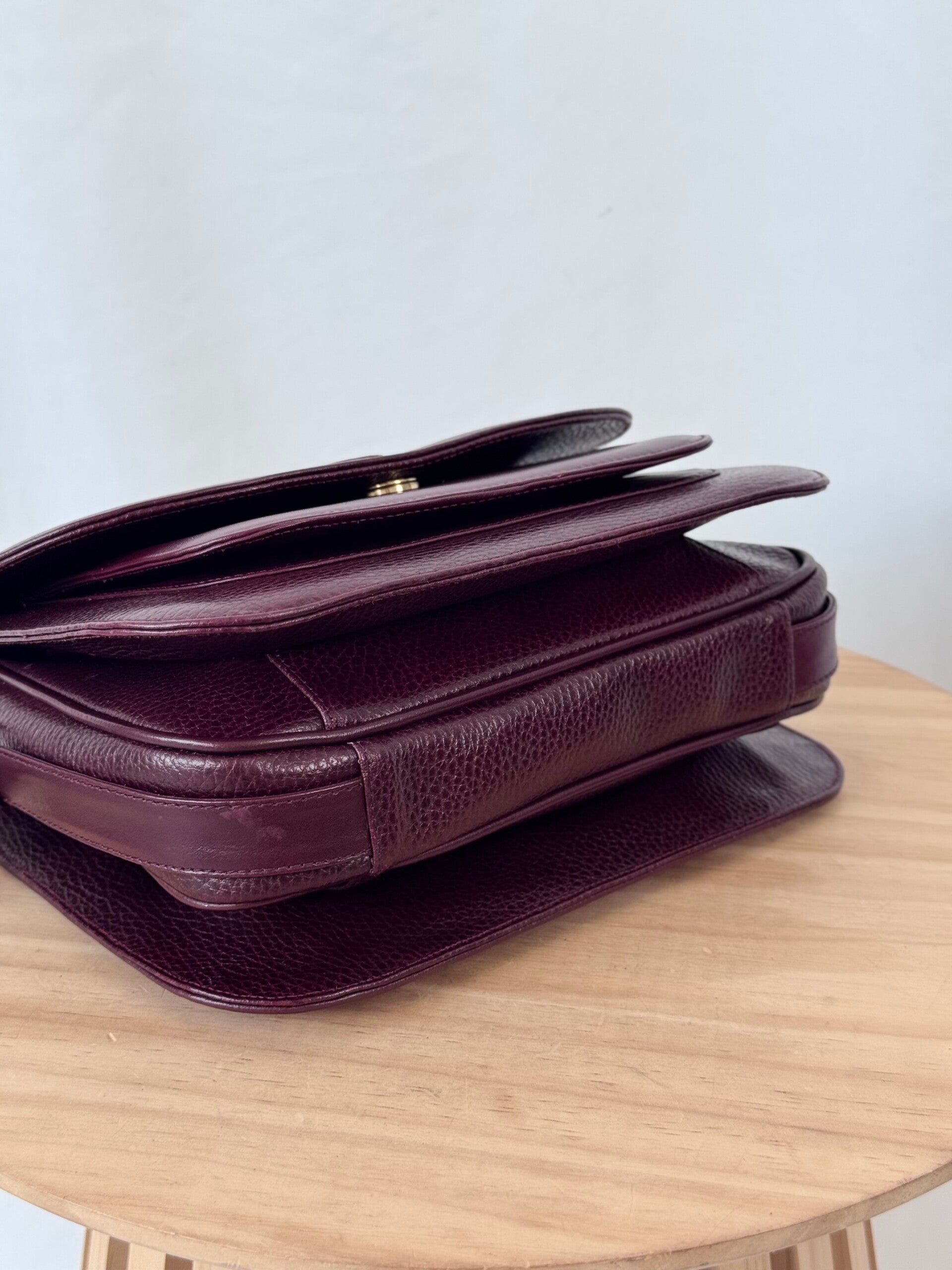 Color: Burgundy grained calf leather combined with smooth boxcalf leather with golden hardware